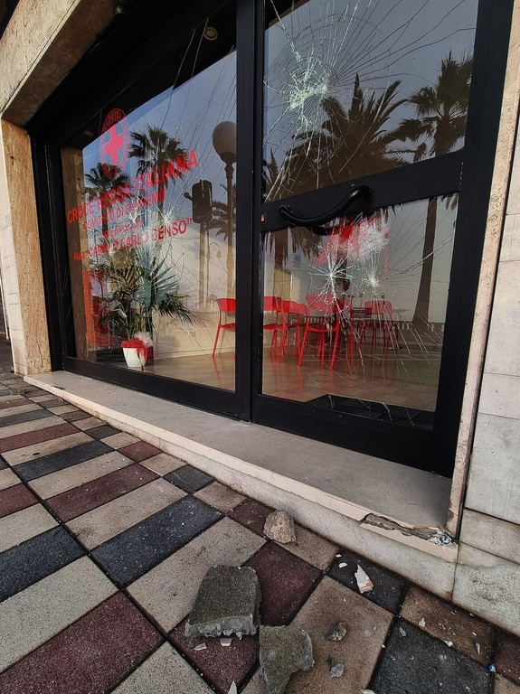 Grave atto vandalico ai danni del comitato di Sanremo della Croce Rossa: pietre contro le vetrate (foto)