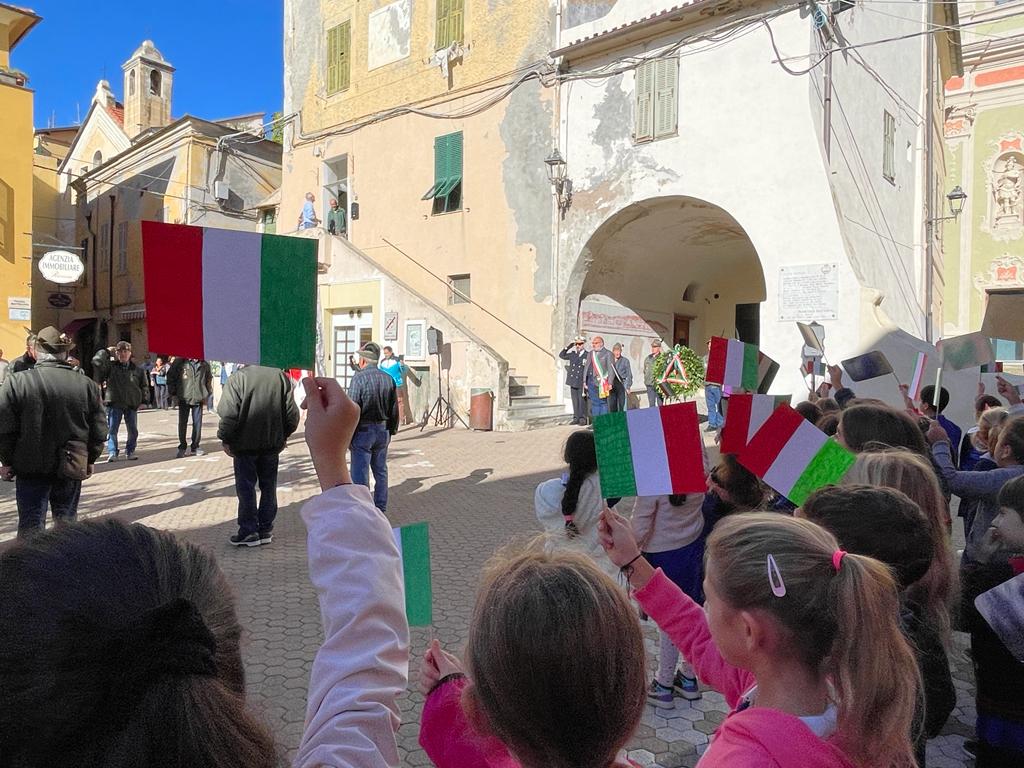 Tricolori al cielo, disegni, poesie e letture: con questo spirito di condivisione si è svolta oggi a Riva Ligure la cerimonia dedicata alla Festa dell’Unità Nazionale e alla Giornata delle Forze Armate.