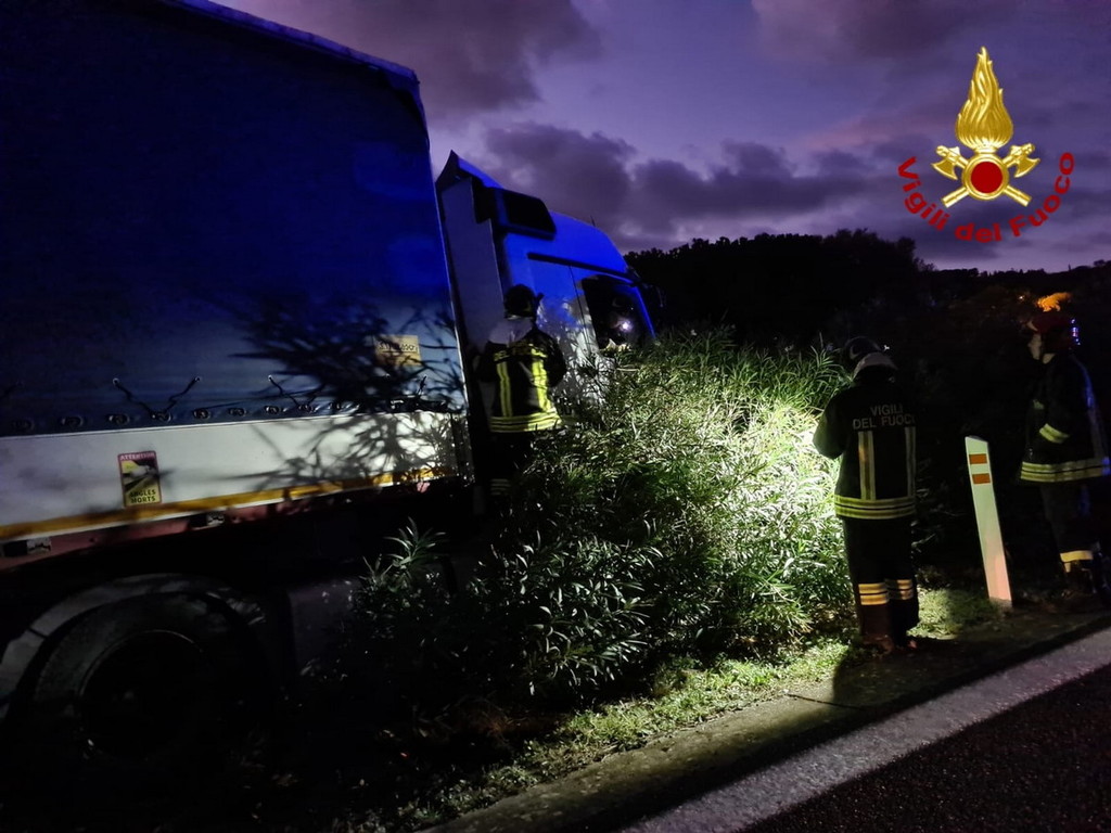 San Bartolomeo al Mare: camion fuoristrada sulla A10, nessun mezzo coinvolto e autista lievemente ferito (Foto)