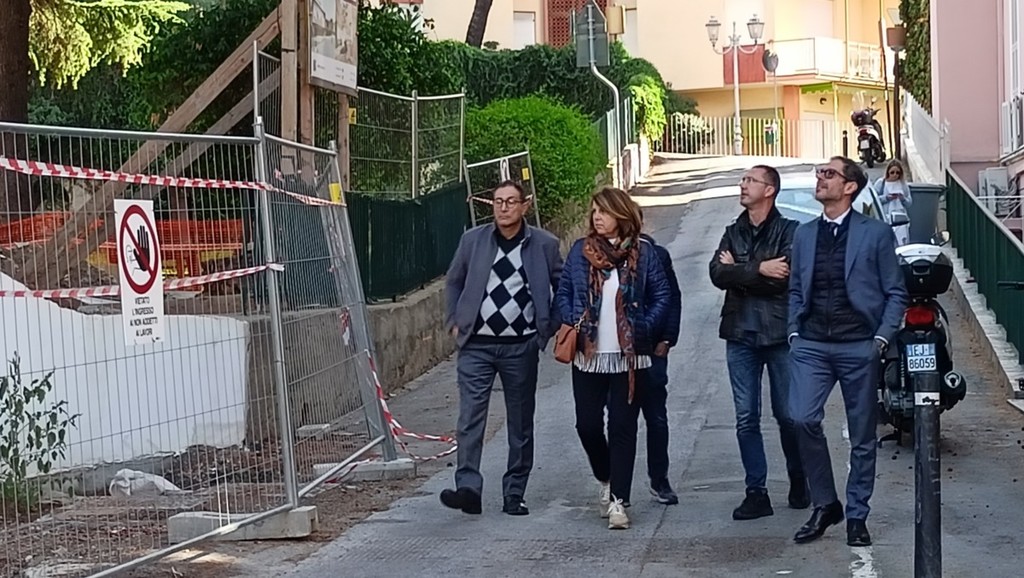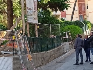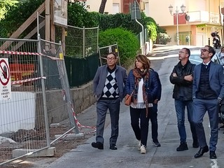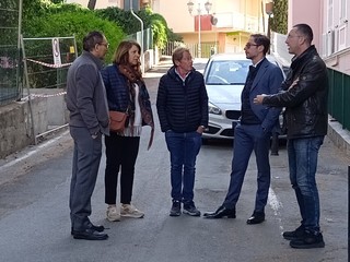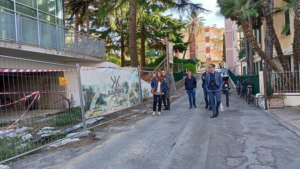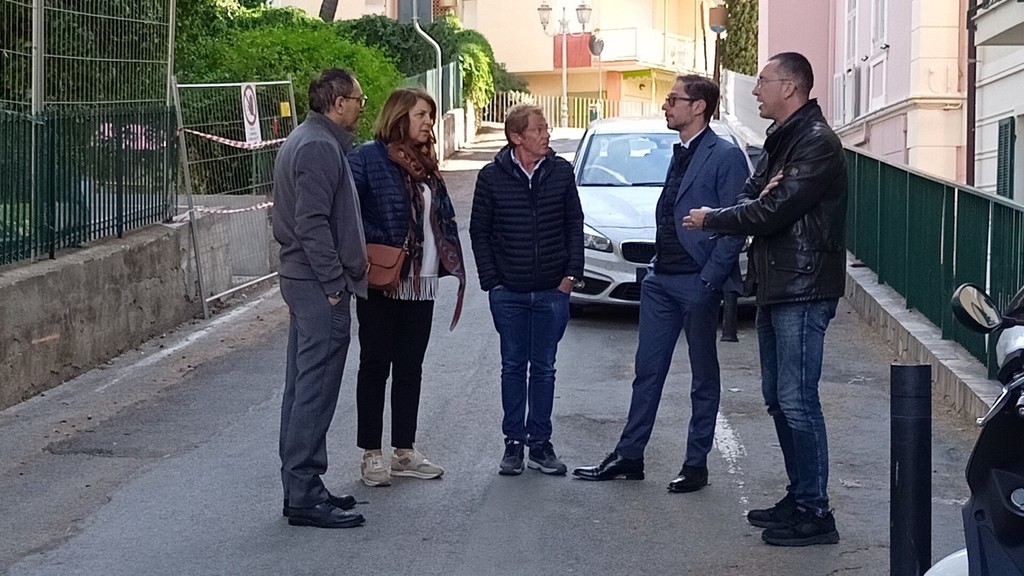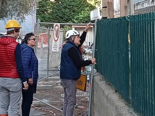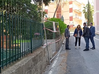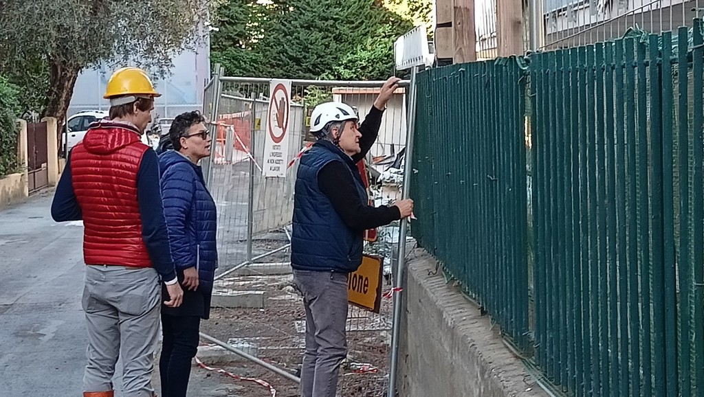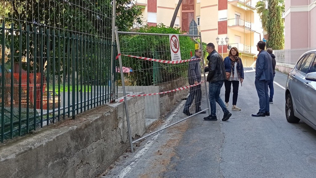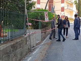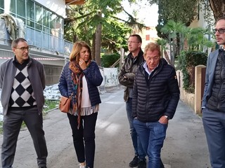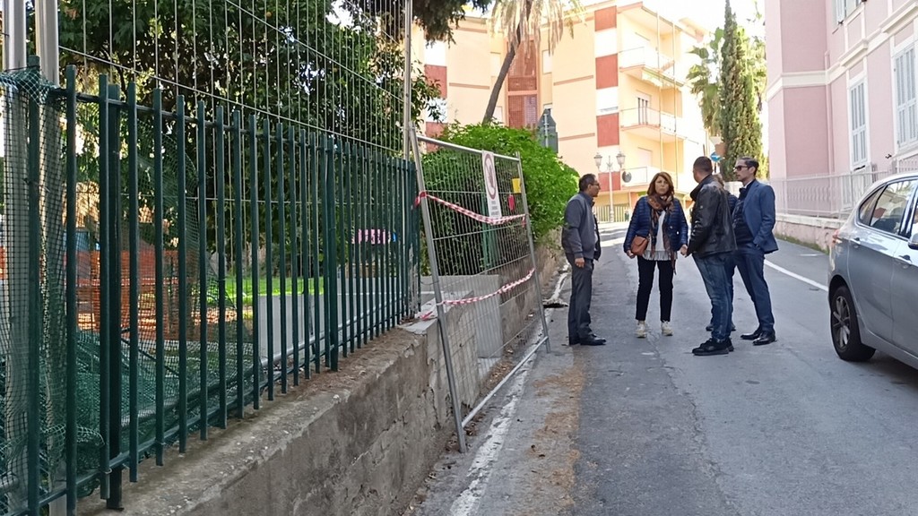 Sopralluogo tecnico, in mattinata, alla scuola dell’infanzia di via Napoli a Bordighera del sindaco Vittorio Ingenito e degli assessori Stefano Gnutti e Melina Rodà.