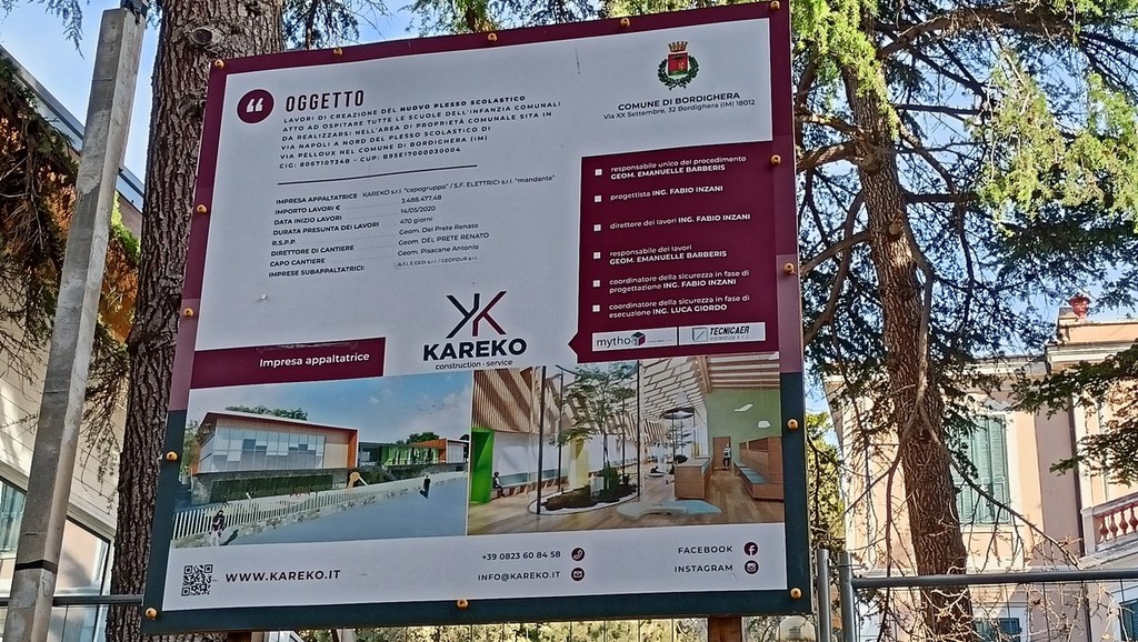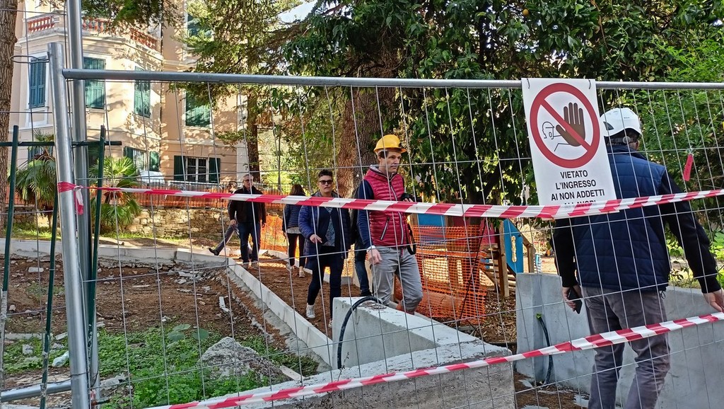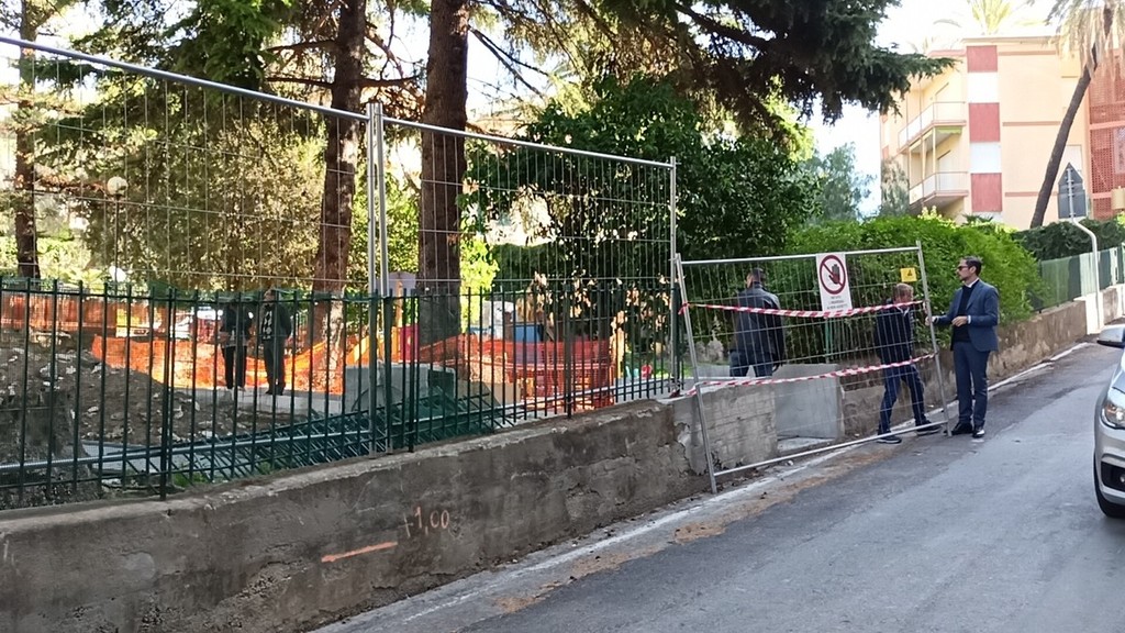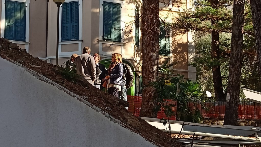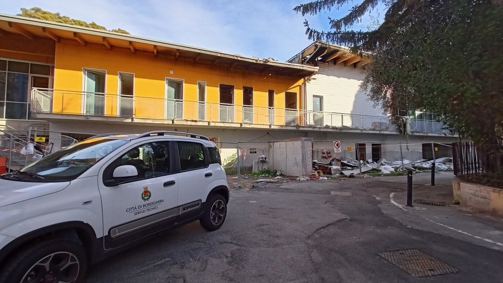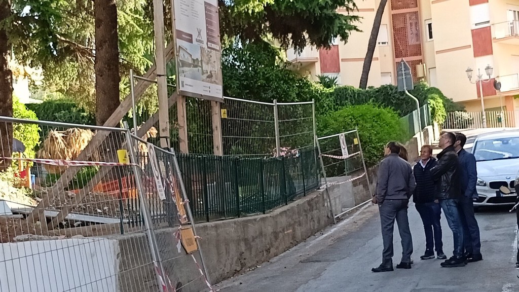 Sopralluogo tecnico, in mattinata, alla scuola dell’infanzia di via Napoli a Bordighera del sindaco Vittorio Ingenito e degli assessori Stefano Gnutti e Melina Rodà.