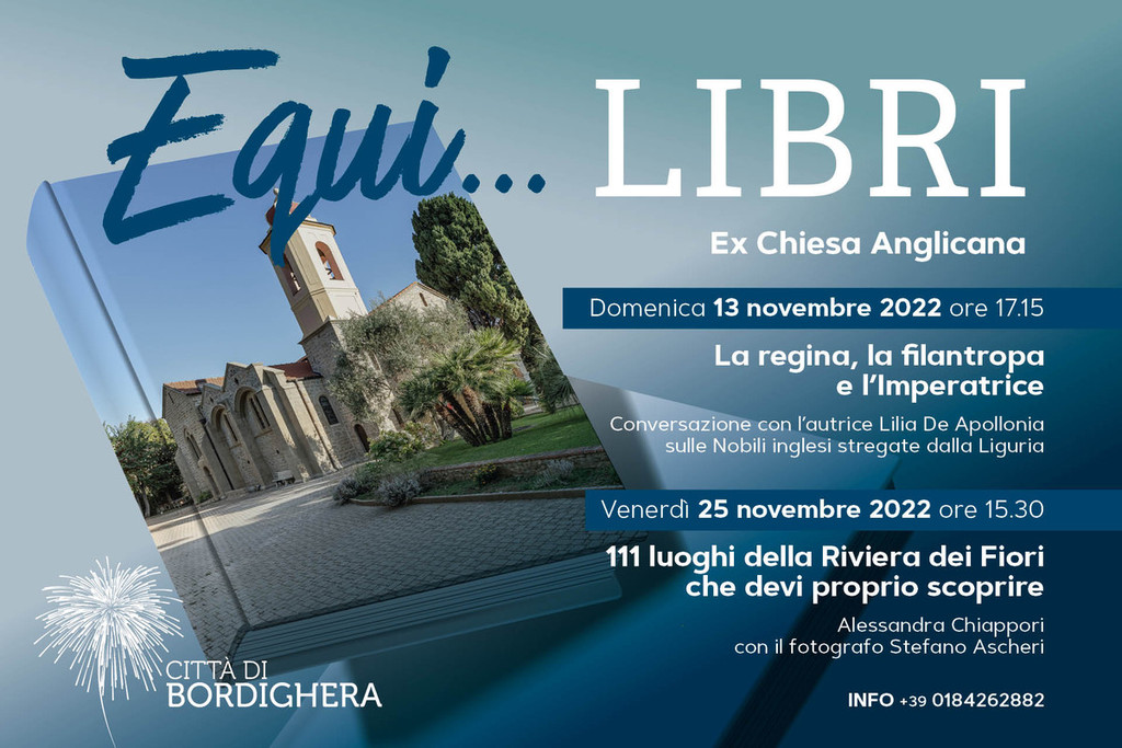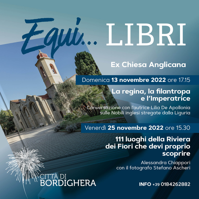 Domenica alle 17.15 all’ex chiesa Anglicana primo appuntamento con “Equi…libri”, nuova rassegna letteraria che conferma Bordighera quale “Città che legge” come da riconoscimento del Centro per il Libro e la lettura del MIBACT.