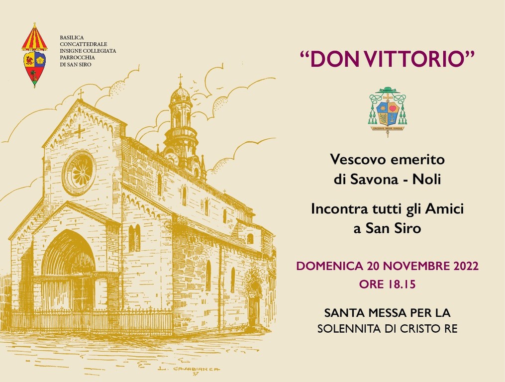 Mons. Vittorio Lupi, Vescovo emerito di Savona - Noli, e confidenzialmente “Don Vittorio” per tutti coloro, e sono tantissimi, che lo hanno incontrato e hanno vissuto con lui, dall’ottobre del 1970 sino a tutto il 1981, nella Parrocchia di San Siro la grande avventura di una “Chiesa in uscita”, quarant’anni prima che Papa Francesco indicasse questa attitudine come obiettivo di ogni battezzato.