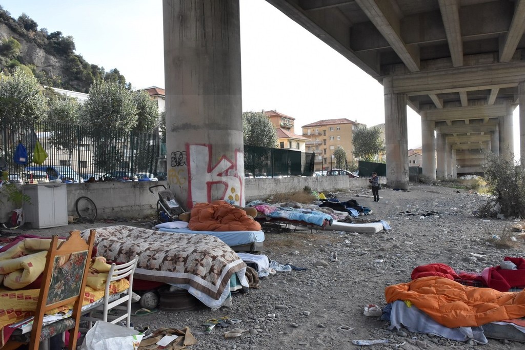 Migranti, alla frontiera continuano i controlli serrati dei francesi: famiglie con bambini al gelo sotto il ponte di Roverino a Ventimiglia (Foto e video)
