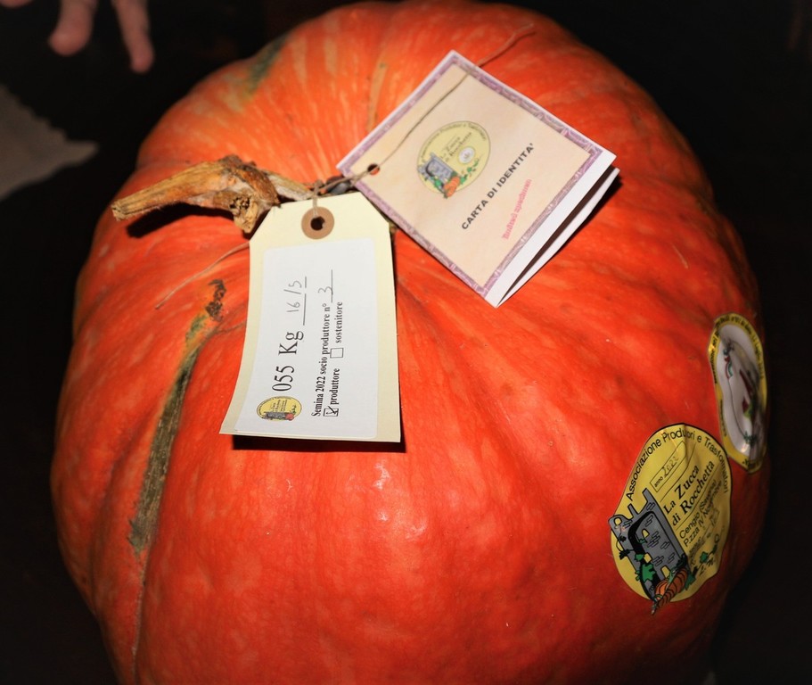 La Zucca di Rocchetta, l’unica che dispone di una carta di identità, nel 2005 è stata salvata dall’estinzione da Slow Food, partendo dai pochi semi rintracciati in una frazione di Cengio appunto Rocchetta. Qui l’utilizzo più diffuso era in cucina per preparare risotti, ripieni di ravioli, nella minestra e per la preparazione di una crema vellutata. Viene raccolta come da disciplinare alla fine di settembre e inizio ottobre. Particolarmente utilizzata per preparazioni di grande qualità, grazie alle sue proprietà di lunga conservazione può arrivare in alcuni casi anche a mantenersi anche fino a 18/24 mesi. Ogni anno le migliori zucche dei soci produttori vengono registrate e ad ognuna viene apposto al picciolo un cartellino riportante il numero dell’esemplare, il peso, il numero del socio produttore al fine di garantirne la piena tracciabilità. Dal 2019 ogni esemplare viene accompagnato dalla sua “carta di identità” riportante tutte le informazioni della registrazione ed è proprio questo particolare a rendere unica questa zucca nel panorama italiano, che vanta molte varietà di cucurbitacee.