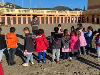 La scuola dell'infanzia di Piazza Roma dell'Istituto 'Littardi' a Imperia ha organizzato oggi una vera e propria lezione in riva al mare itinerante per le spiagge della nostra bellissima Borgo Marina.