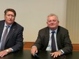 Simbolico passaggio di consegne stamattina in Camera di Commercio a Imperia tra il neo senatore Gianni Berrino e il nuovo assessore regionale Augusto Sartori che ha ereditato le deleghe a Turismo, Trasporti e Lavoro. Sartori, su invito del presidente della Camera di Commercio Enrico Lupi ha incontrato categorie e sindacati.