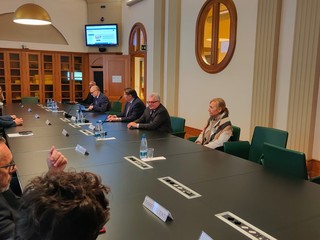 Simbolico passaggio di consegne stamattina in Camera di Commercio a Imperia tra il neo senatore Gianni Berrino e il nuovo assessore regionale Augusto Sartori che ha ereditato le deleghe a Turismo, Trasporti e Lavoro. Sartori, su invito del presidente della Camera di Commercio Enrico Lupi ha incontrato categorie e sindacati.