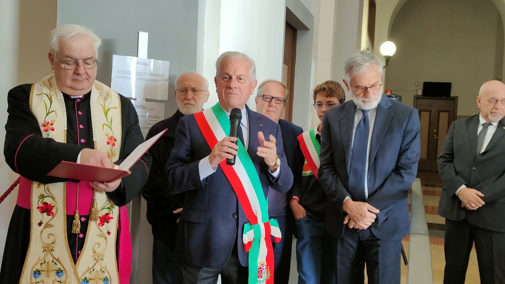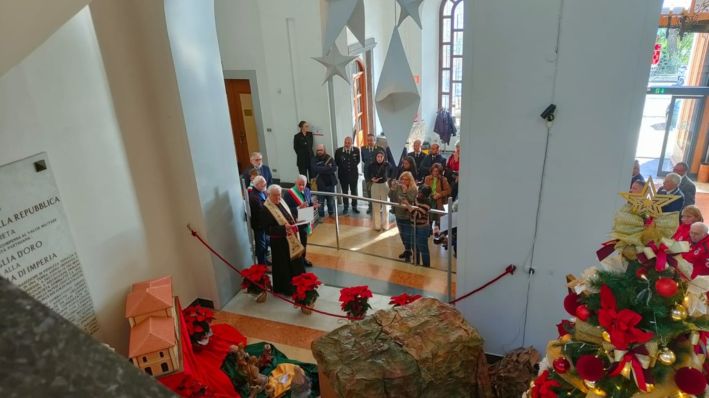 Al termine della cerimonia è stato inaugurato il Presepe ambientato in città, con lo sfondo di Palazzo comunale, Archivolto di Sottotina.