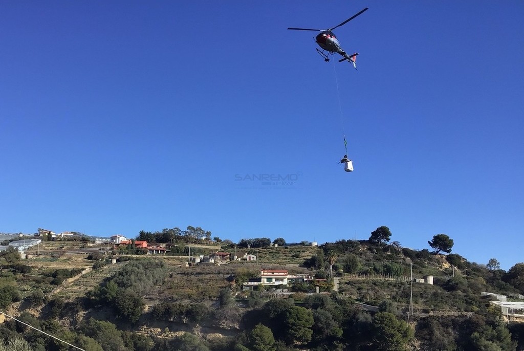 Sanremo: ripresi i lavori per l'antenna 5G di Bussana, elicottero in azione vicino alle case (foto e video)
