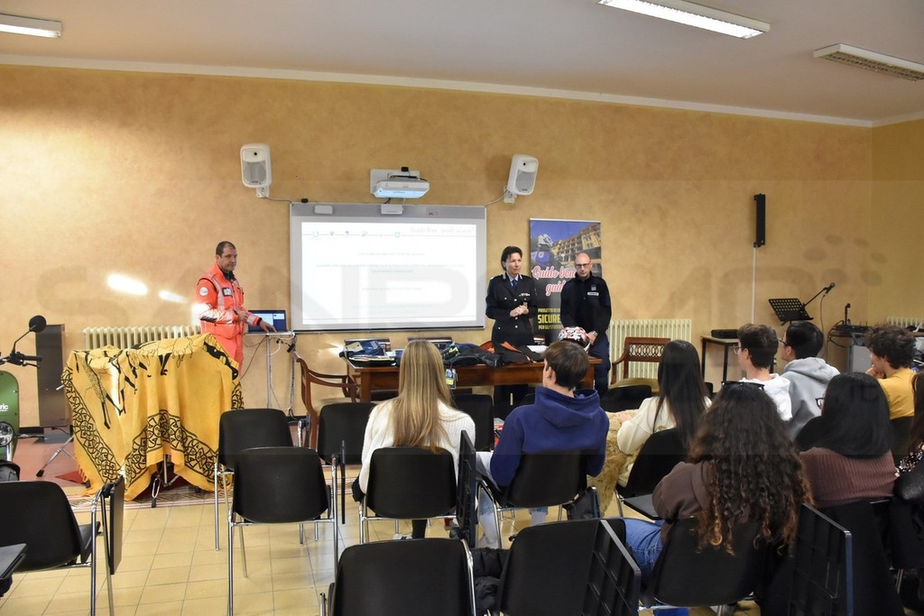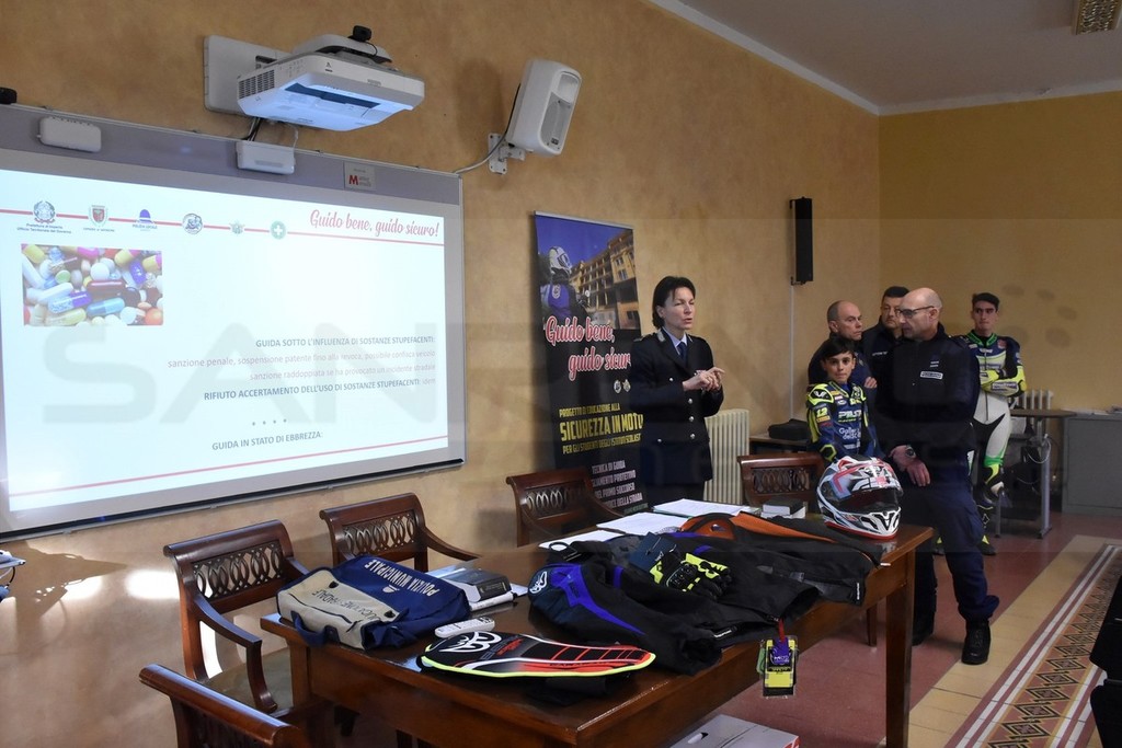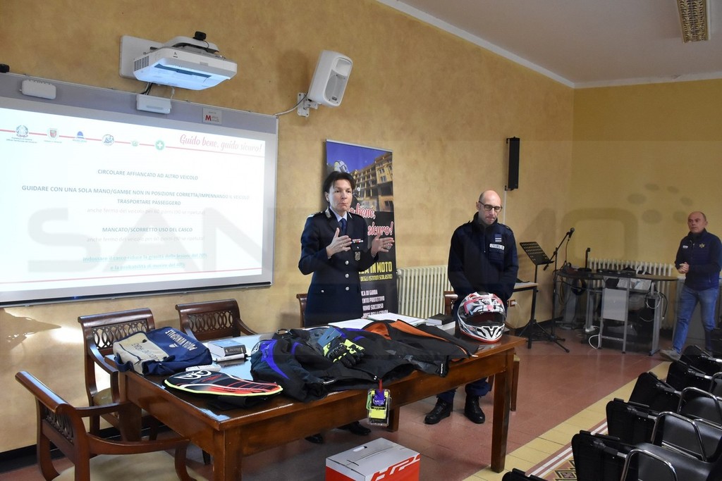 Primo appuntamento, questa mattina nella sede distaccata del Liceo ‘Cassini’ di Sanremo a Villa Magnolie per ‘Guido bene, guido sicuro!’, il progetto di educazione alla sicurezza in moto, organizzato dal Comune di Sanremo in collaborazione con il Comando della Polizia Municipale matuziana, la Federmoto (con Giulio Romei Presidente ligure) e il supporto della Prefettura.