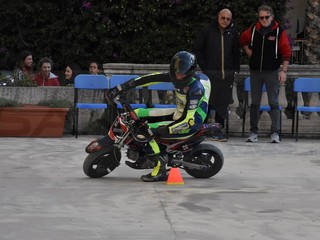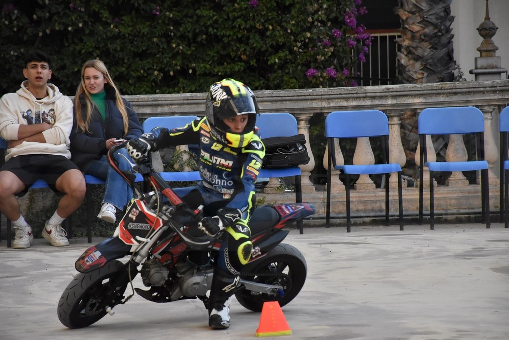 Oltre alla sessione teorica è stato anche il momento per vedere, sul piazzale antistante la scuola, una piccola esibizione di due motociclisti della nostra provincia, che hanno provato alcune evoluzioni a bordo di mini moto.