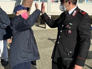 L’istituto, nell’ambito del progetto “W le divise”, ha organizzato l’incontro con i militari dell’Arma per avvicinare gli ospiti al personale in divisa e far toccare loro con mano il servizio svolto quotidianamente dai Carabinieri. Sin dai primi minuti ed alla vista delle uniformi della Benemerita, i circa trenta ospiti della struttura hanno accolto con gioia i militari, consegnandogli un cartellone con dediche e disegni da loro realizzato per festeggiare l’evento.