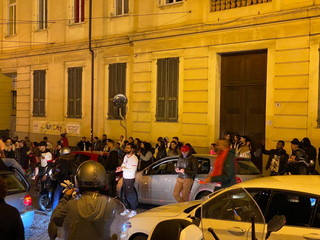 In tantissimi hanno invaso piazza Colombo e altre strade del centro a suon di clacson e caroselli.