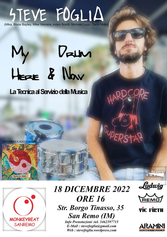 In concomitanza con l'uscita del nuovo video della 'Steve Foglia Society' tratto dalla canzone 'Master of Nothing', il batterista annuncia un nuovo tour di clinic dove presenterà l'album 'Here & Now' suonando alcuni brani estrapolando concetti tecnici e aneddoti sulla lavorazione del disco.