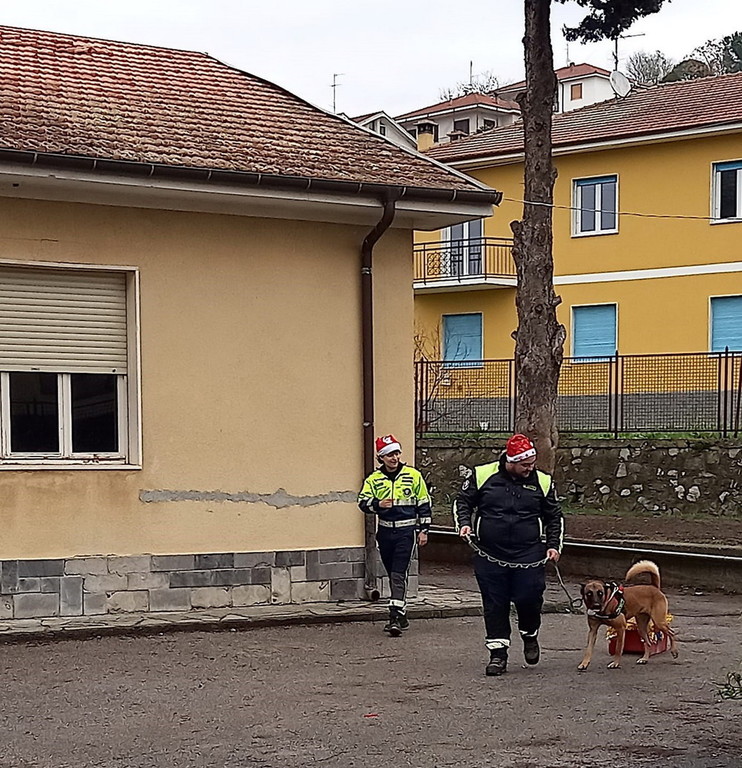 Festa a sorpresa per i bambini della Scuola Primaria Vercesi di Caramagna, dell'Istituto comprensivo Boine. Nell'ambito del progetto "Un animale per amico", il Nucleo Cinofilo della Protezione civile SS. Trinità di Imperia ha proposto un Babbo Natale assolutamente singolare.