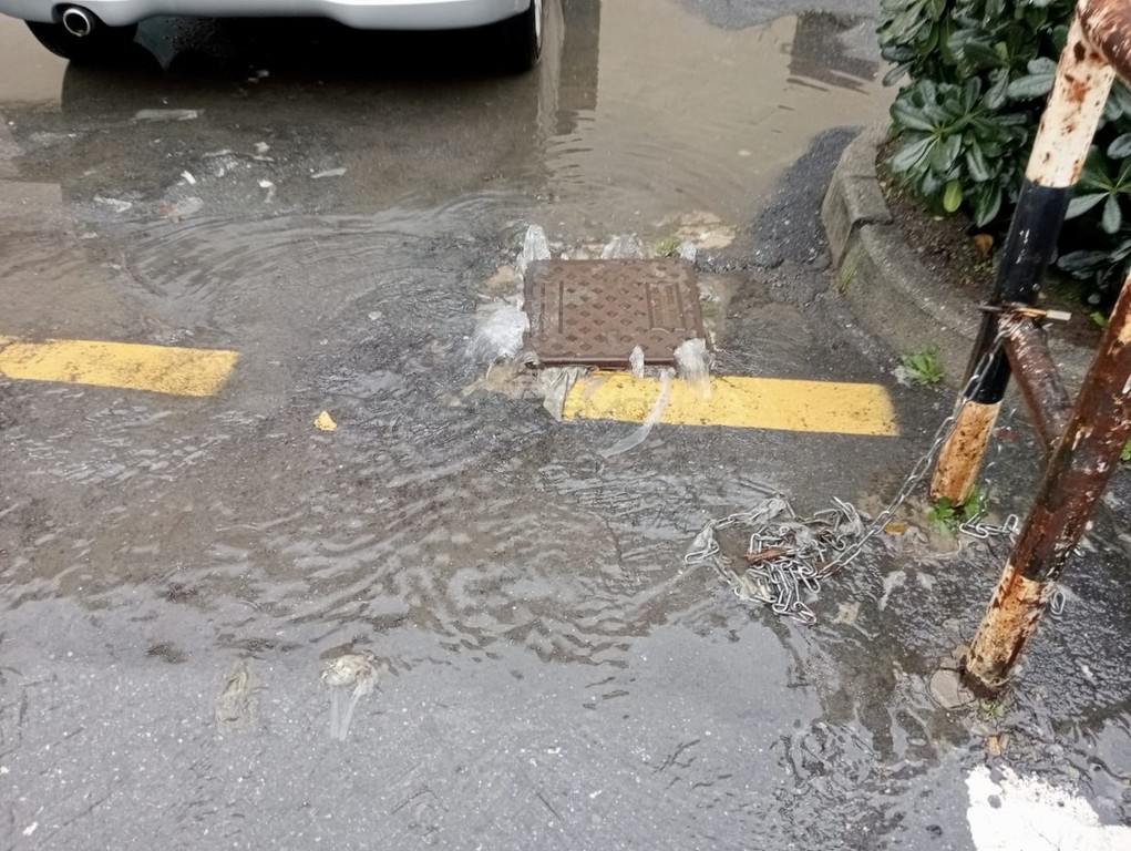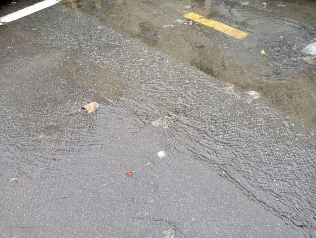 Una circostanza con la quale i lavoratori dei cantieri devono fare i conti e che rende a dir poco difficile il lavoro in caso di pioggia. Il torrente ‘nero’ esce dai tombini e si riversa in mare con ovvie conseguenze al passaggio delle auto. Il tratto di strada è quindi impossibile da superare a piedi a meno di non voler fare i conti con un attraversamento a dir poco sgradevole.