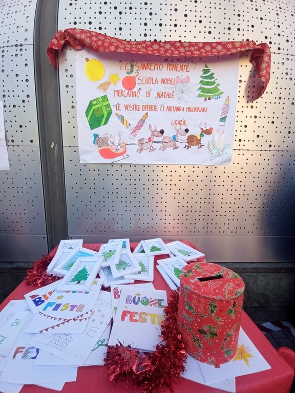 I ragazzi della classi prime della scuola media Nobel di Sanremo hanno organizzato nella mattinata del 22 dicembre un Mercatino di Natale, proponendo oggetti da loro realizzati con materiali di riuso e riciclo.