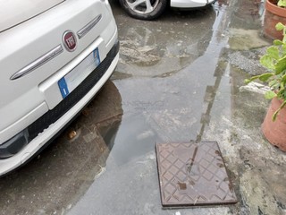 Una circostanza con la quale i lavoratori dei cantieri devono fare i conti e che rende a dir poco difficile il lavoro in caso di pioggia. Il torrente ‘nero’ esce dai tombini e si riversa in mare con ovvie conseguenze al passaggio delle auto. Il tratto di strada è quindi impossibile da superare a piedi a meno di non voler fare i conti con un attraversamento a dir poco sgradevole.