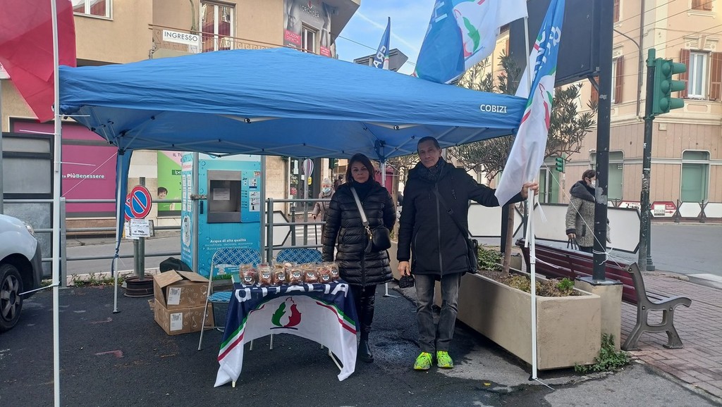 Fratelli d’Italia augura buon Natale e felice anno nuovo ai cittadini di Vallecrosia distribuendo panettoni. Questa mattina, infatti, al banchetto del partito di Giorgia Meloni, sul solettone sud della città della famiglia, erano presenti il consigliere regionale Veronica Russo, il consigliere comunale e responsabile degli enti locali della provincia di Imperia Fabio Perri e il responsabile del terzo settore della provincia di Imperia Mirko Valenti hanno incontrato amici e sostenitori per fare gli auguri di buone feste.