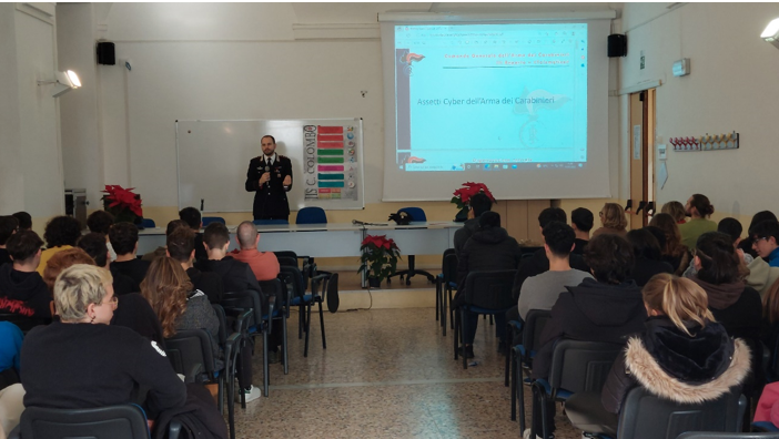 I ragazzi, che si accingono a conseguire al termine dell’anno scolastico il diploma di maturità, hanno rivolto diverse domande ed esternato le proprie curiosità ai militari dell’Arma, che non solo hanno descritto le peculiarità della forza armata, con i diversi comparti ed organizzazioni interne, ma hanno anche offerto loro un’ampia illustrazione degli iter concorsuali di selezione, con particolare riferimento ai giovani della cosiddetta “Generazione Z”, con percorsi formativi che prevedono l’acquisizione di specifiche competenze in ambito informatico/telematico. E’ una novità infatti che proprio a partire da quest’anno, alla Scuola Marescialli di Firenze, verranno selezionate alcune decine di allievi che al termine del percorso formativo di base saranno specializzati proprio nel settore delle Indagini Telematiche, al fine di meglio poter contrastare i delitti commessi via web, quali ad esempio le truffe e le frodi informatiche, reati che sempre di più colpiscono giovani e meno giovani, a volte con ingenti danni di natura economica per le vittime che spesso vedono svuotati i loro conti correnti o le loro carte di credito.