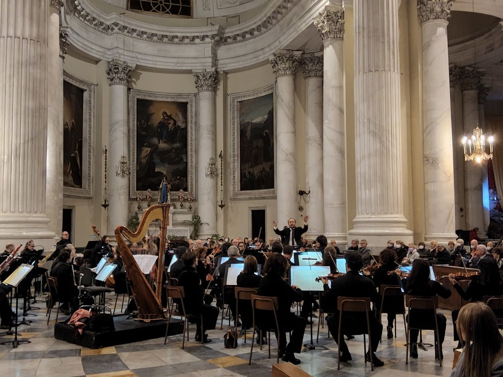 Pubblico delle grandi occasioni, ieri al terzo concerto dell’orchestra del Teatro dell’Opera di Genova sotto le imponenti navate della Concattedrale di San Maurizio e Compagni Martiri di Imperia.