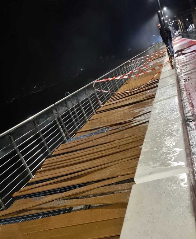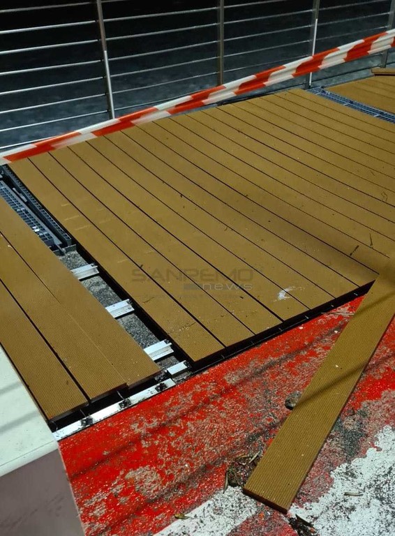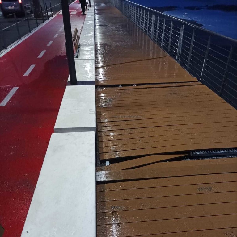 Assi di legno sollevate dalla forza del mare, la zona è stata transennata in attesa della messa in sicurezza