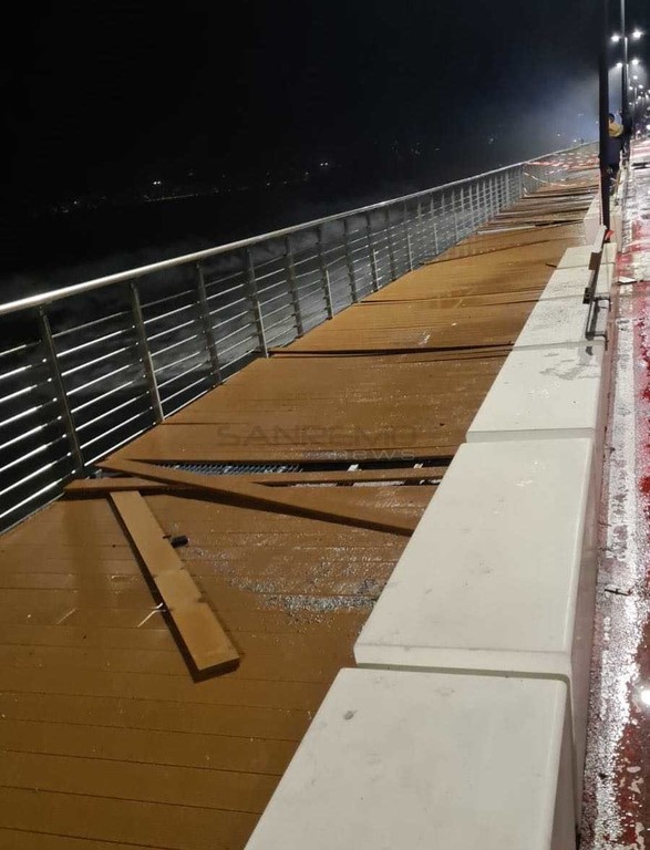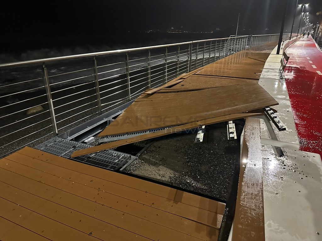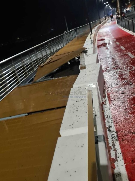 Primi danni a Ventimiglia per via della mareggiata che da alcune ore si sta abbattendo sulle coste del Ponente.