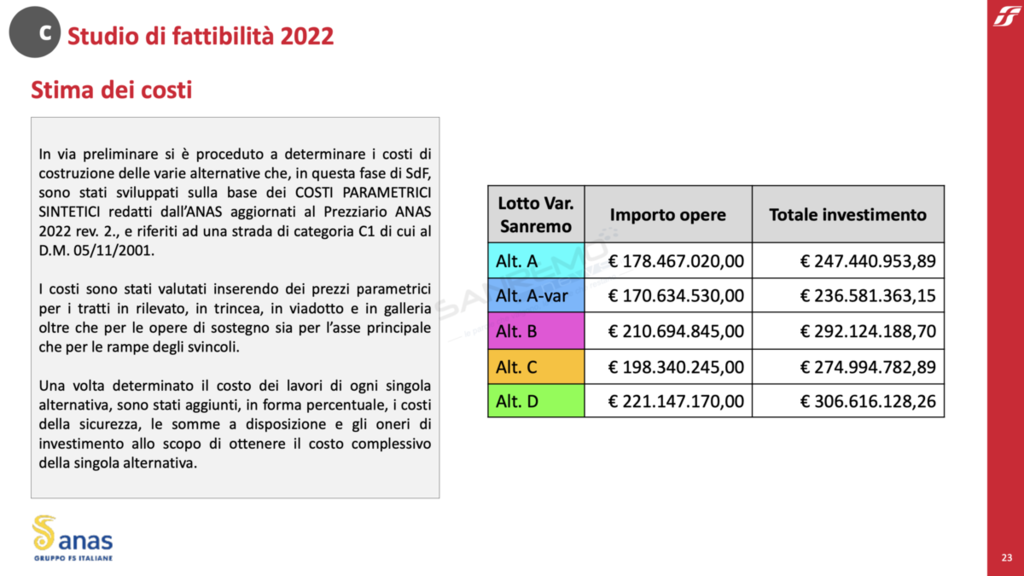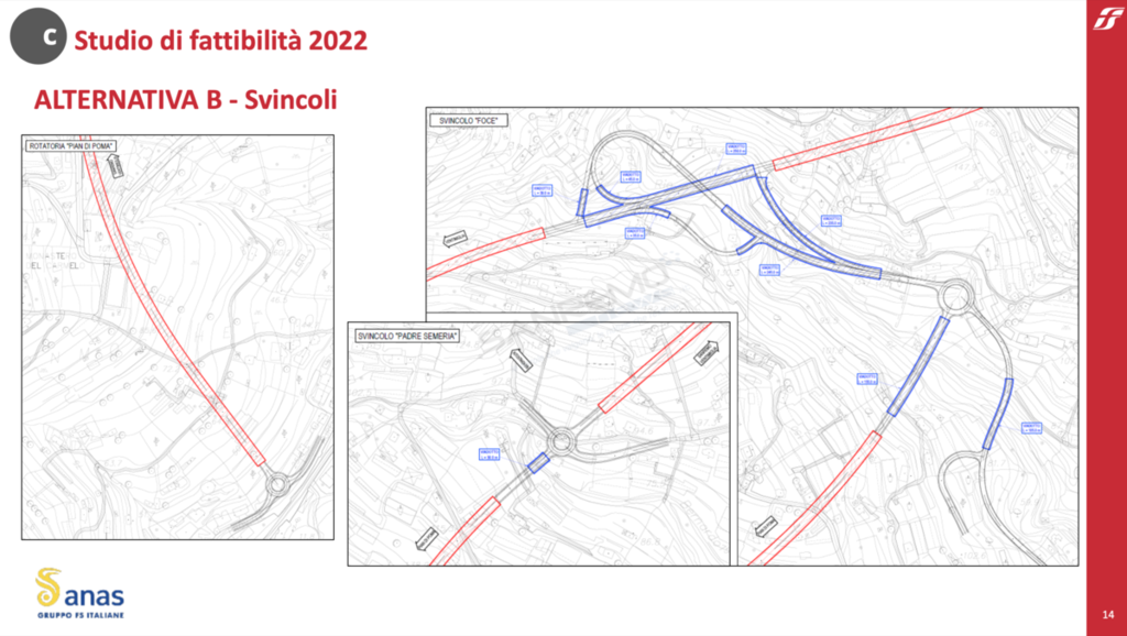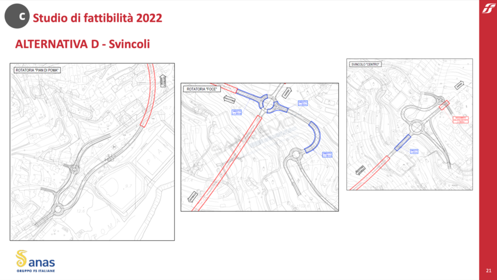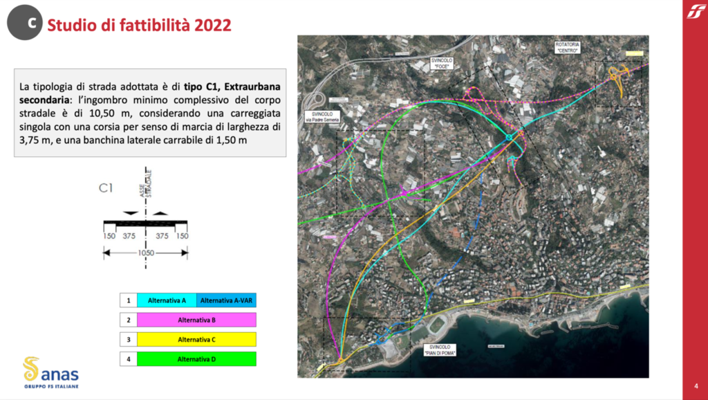 Anas ha effettuato 4 studi di fattibilità tecnico-economica, uno per ogni alternativa di progetto.