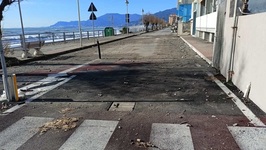 Gibelli: "Ripristinata la passeggiata, sia dal punto di vista pedonale che veicolare". Biasi: "Stiamo valutando l’entità dei danni. Nel pomeriggio la ditta incaricata inizierà a sgombrare il materiale lapideo"