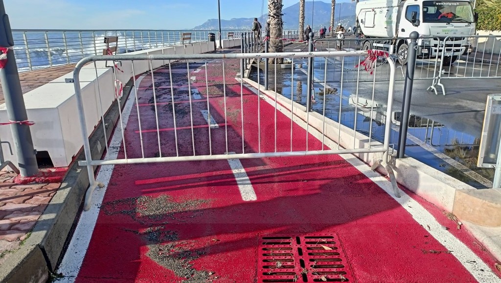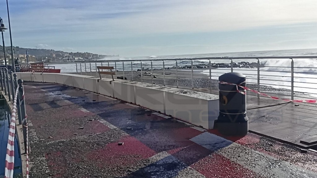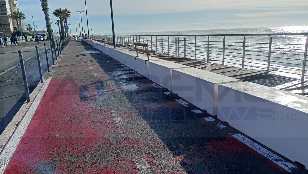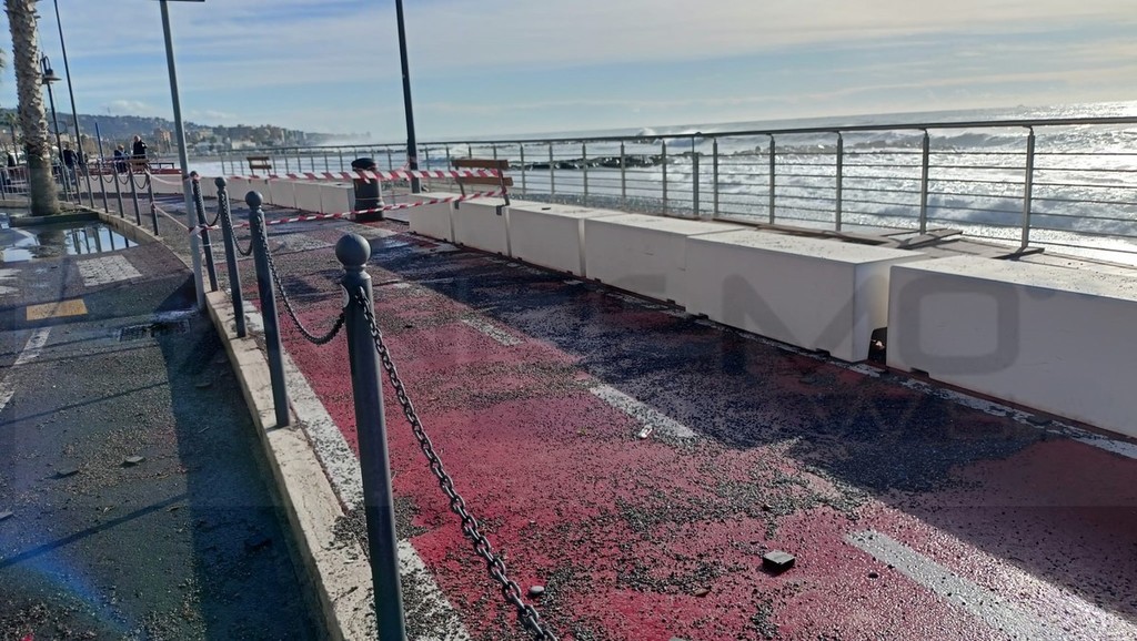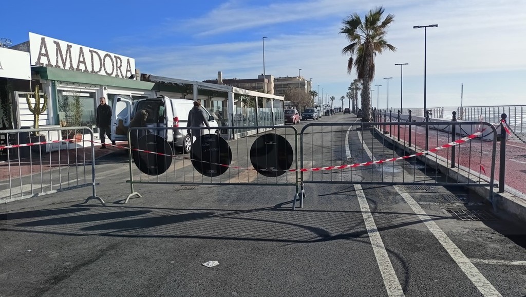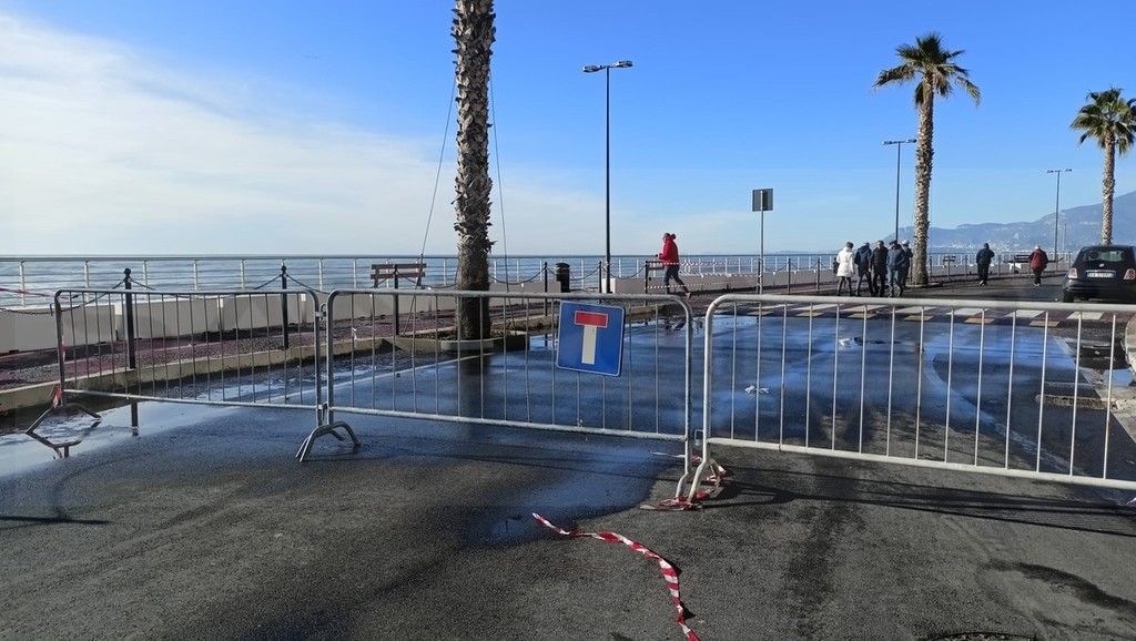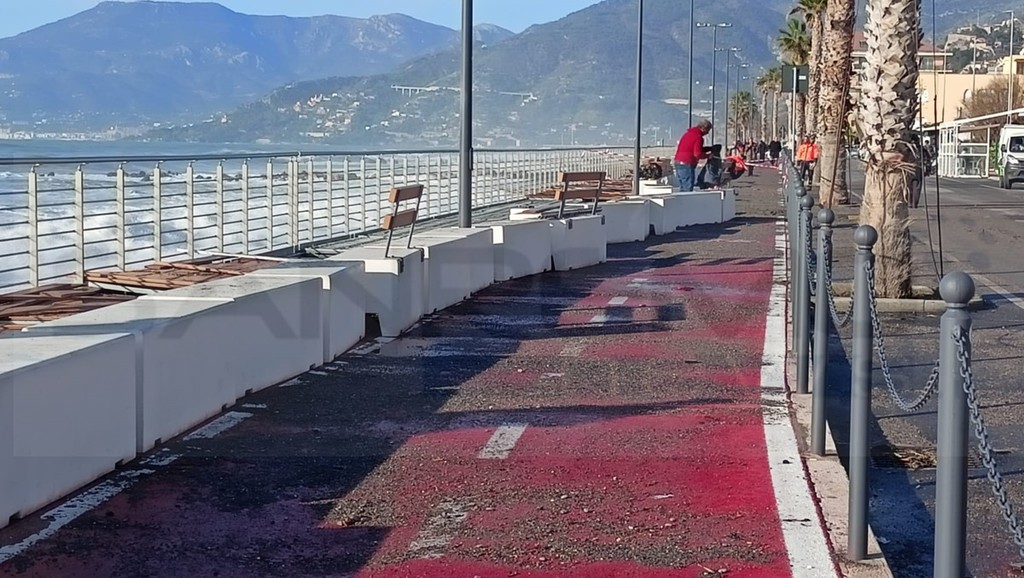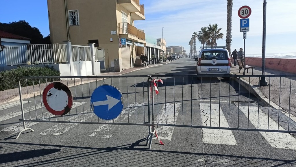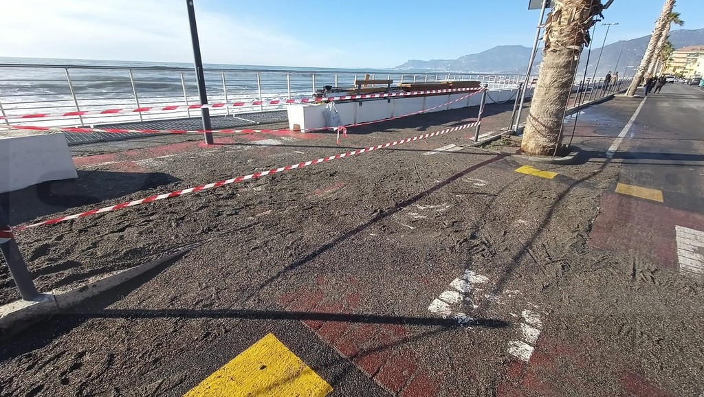 Strada chiusa sul lungomare nel tratto tra via Lamboglia e via Tacito. Sul posto sono presenti operai e tecnici del Comune per iniziare l'opera di ripristino che durerà diversi giorni. La mareggiata ha divelto molti massi ma ha portato tantissima sabbia