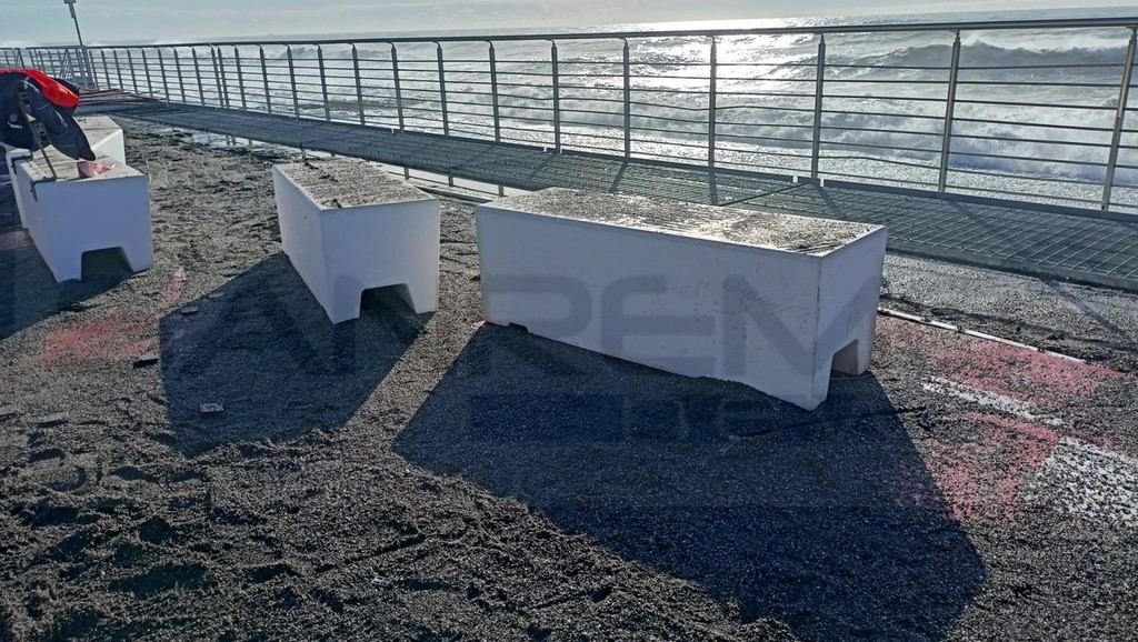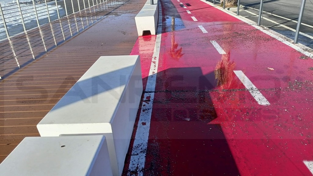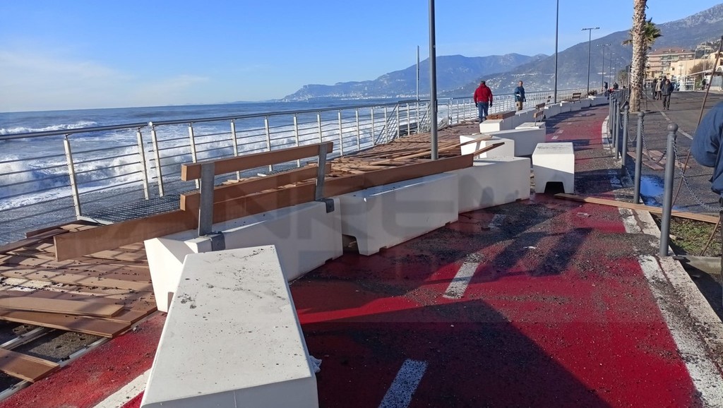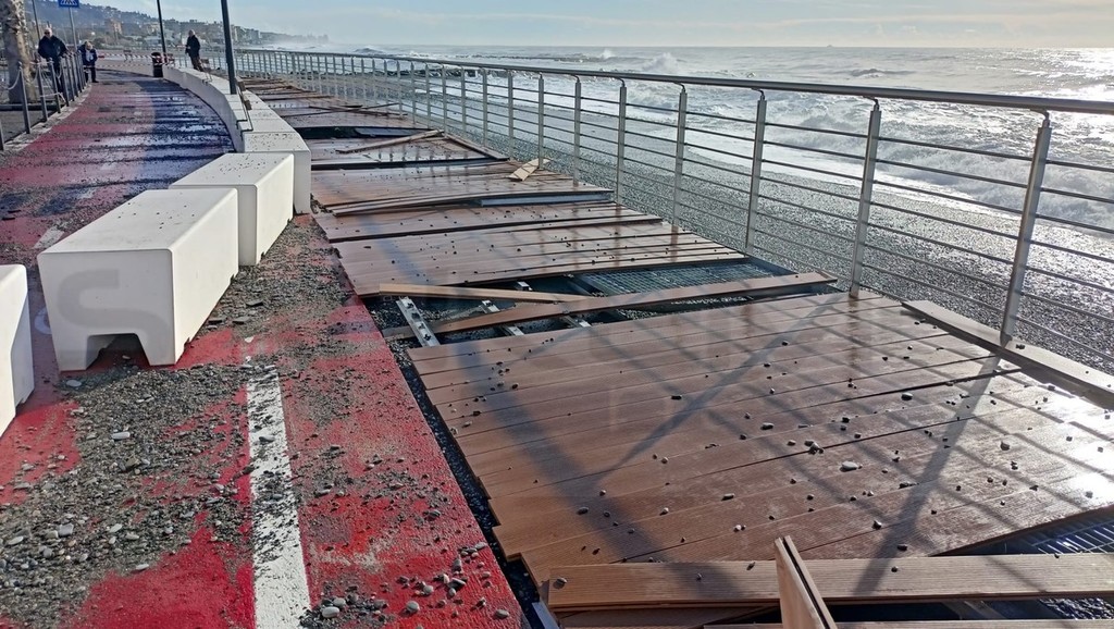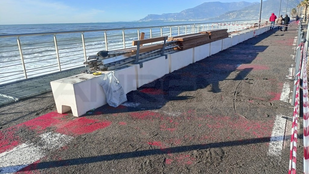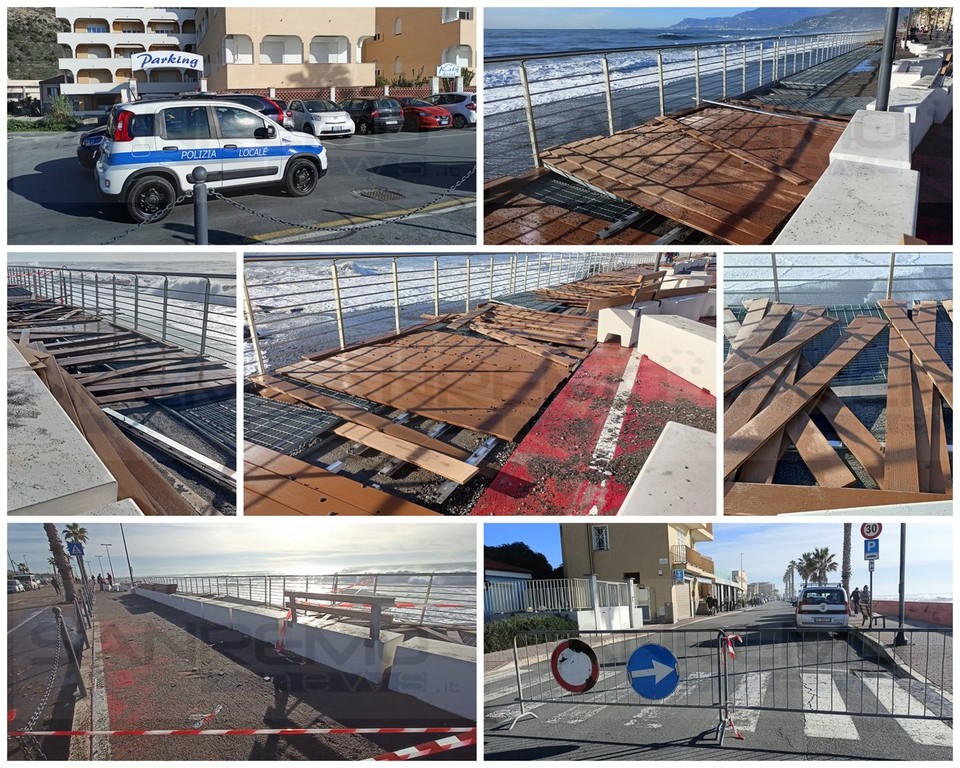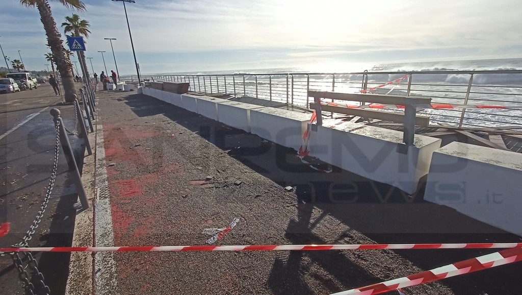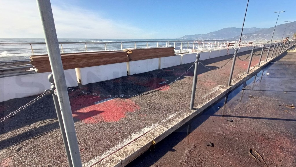 Strada chiusa sul lungomare nel tratto tra via Lamboglia e via Tacito. Sul posto sono presenti operai e tecnici del Comune per iniziare l'opera di ripristino che durerà diversi giorni. La mareggiata ha divelto molti massi ma ha portato tantissima sabbia