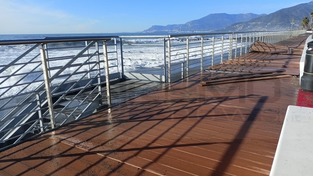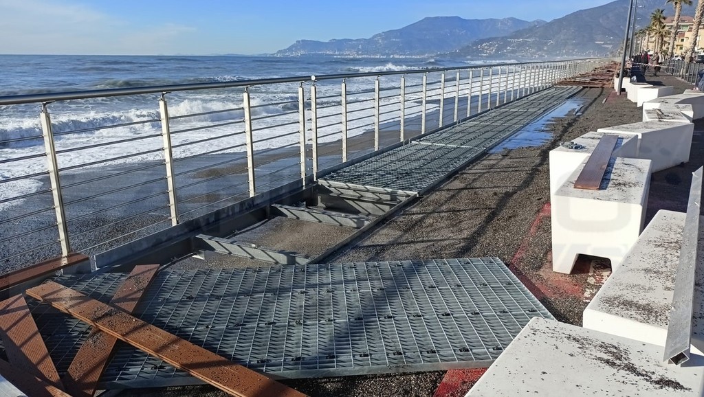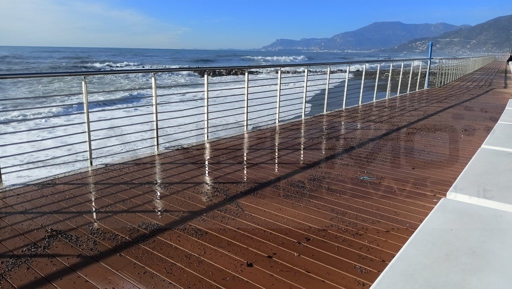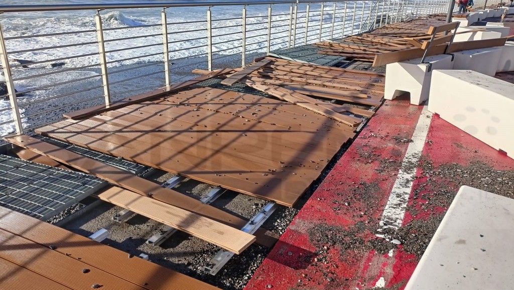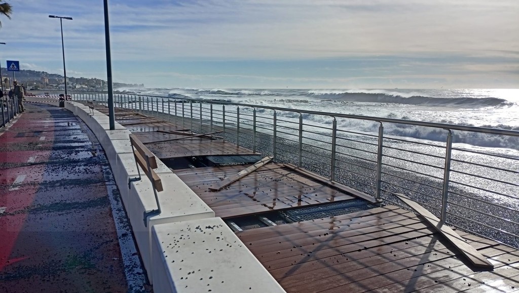 Ventimiglia, la mareggiata danneggia la passeggiata a sbalzo. Scullino: "Il danno c'è ma la struttura ha tenuto" (Foto e video)