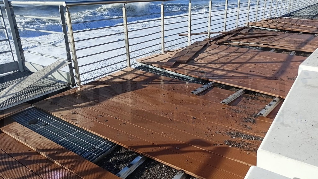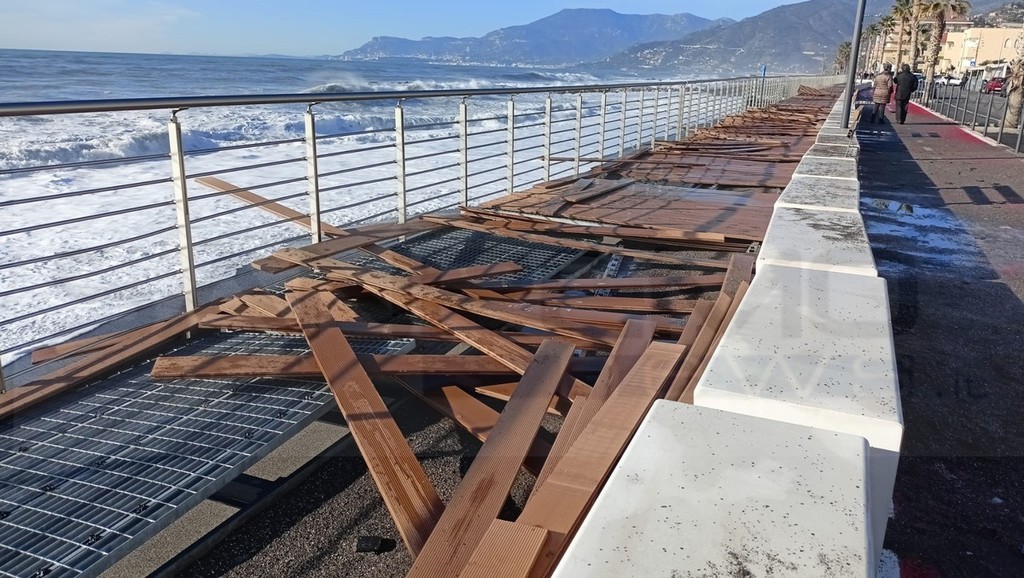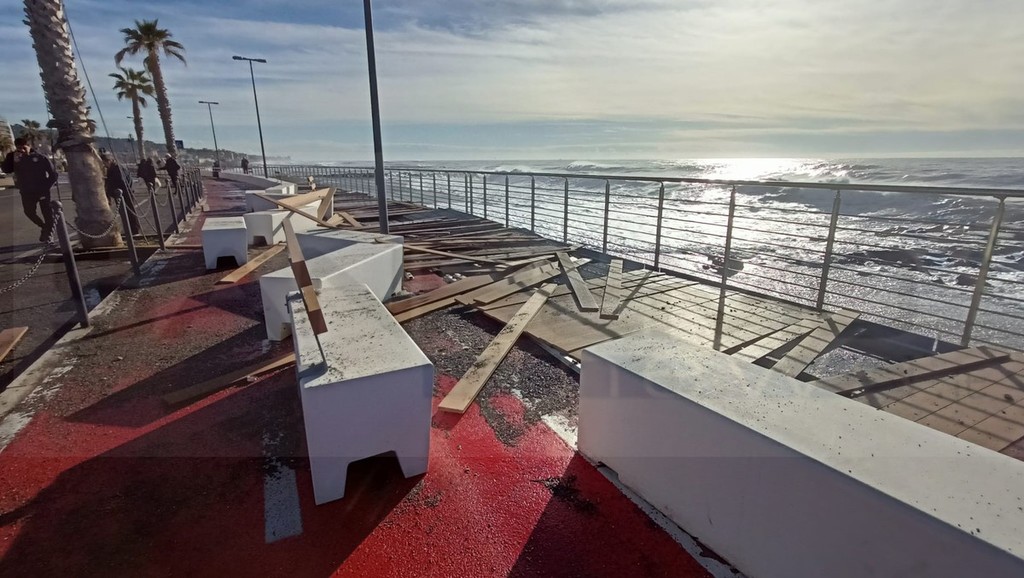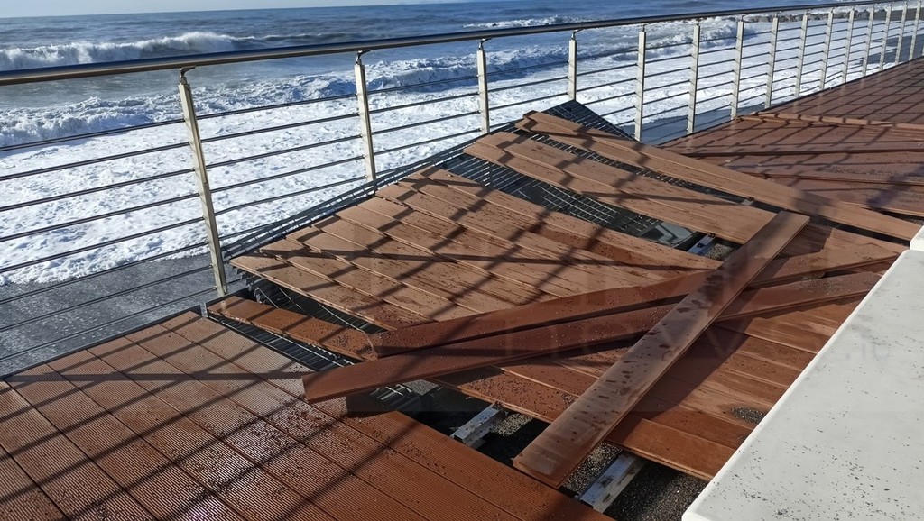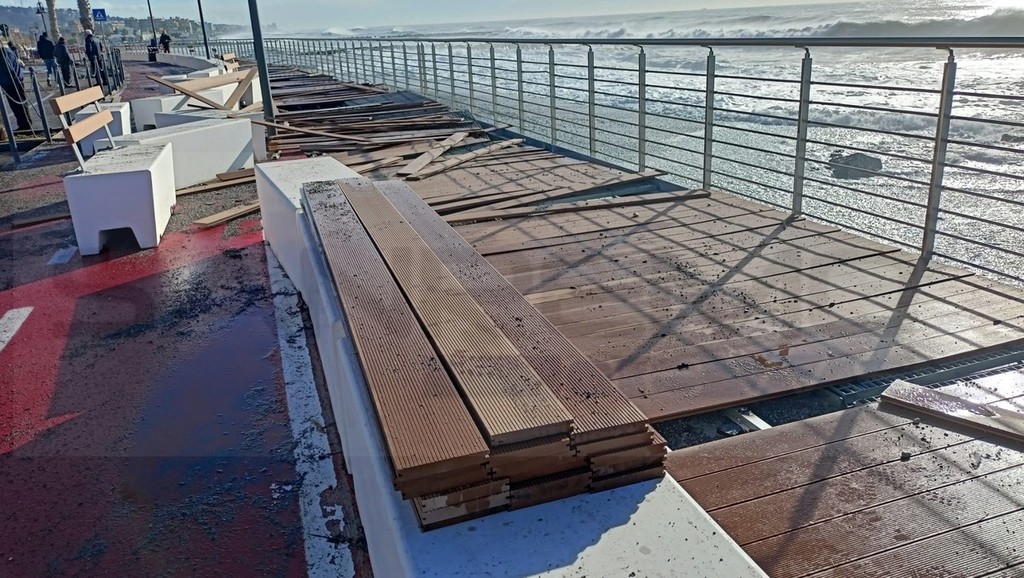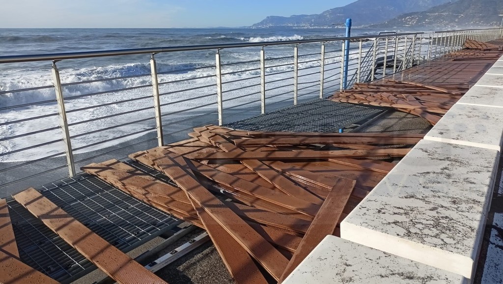 Ventimiglia, la mareggiata danneggia la passeggiata a sbalzo. Scullino: "Il danno c'è ma la struttura ha tenuto" (Foto e video)
