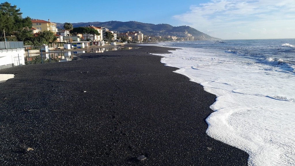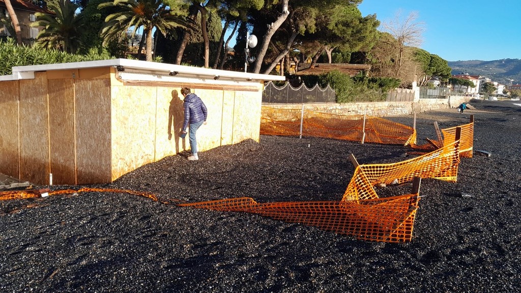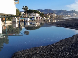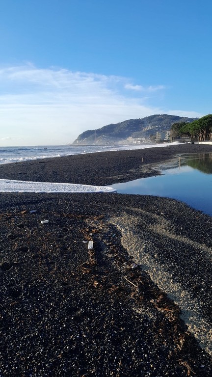 La mareggiata di ieri pomeriggio ha lasciato il segno sulla spiaggia di Borgo Paradiso a Diano Marina.