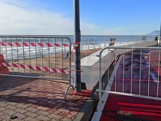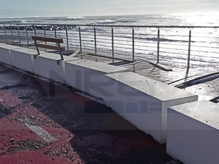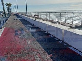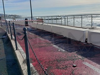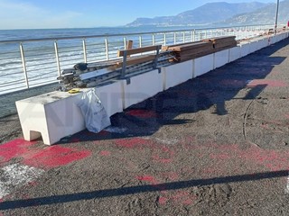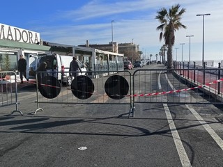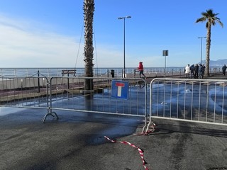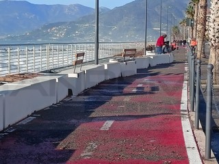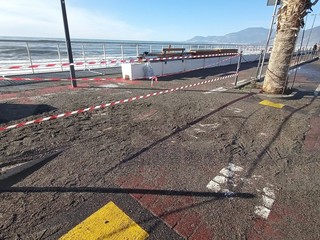 Strada chiusa sul lungomare nel tratto tra via Lamboglia e via Tacito. Sul posto sono presenti operai e tecnici del Comune per iniziare l'opera di ripristino che durerà diversi giorni. La mareggiata ha divelto molti massi ma ha portato tantissima sabbia