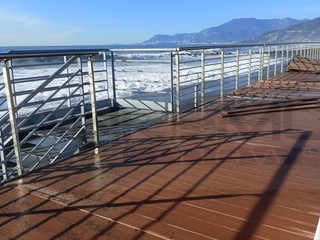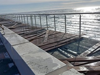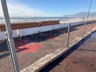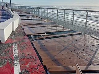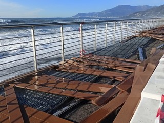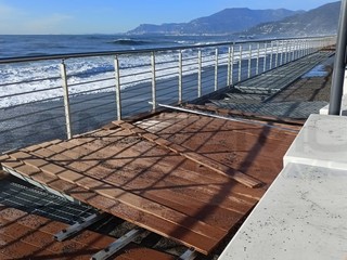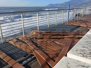 Ventimiglia, la mareggiata danneggia la passeggiata a sbalzo. Scullino: "Il danno c'è ma la struttura ha tenuto" (Foto e video)