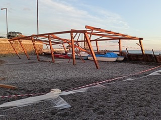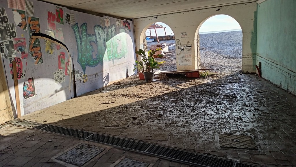 Lo stabilimento è stato distrutto esternamente dalle onde ma ha riportato danni anche all’interno visto che l’acqua è risalita dal terreno. "Con la mareggiata siamo stati invasi da circa un metro e mezzo d’acqua che arrivava da sotto. Il dehor con la struttura in legno, inoltre, è pericolante e ora dovremmo provvedere a metterlo in sicurezza” - sottolinea Mutascio - "Il mare sbatteva davanti ma poi, a causa della ghiaia posizionata a schiena d'asino, ha iniziato ad arrivare pure lateralmente e così ha raggiunto il sottopasso. Inoltre più la forza del mare aumentava più l'acqua saliva anche dal terreno. Ora ci sono tanti danni e ci sarà tanto lavoro da fare".