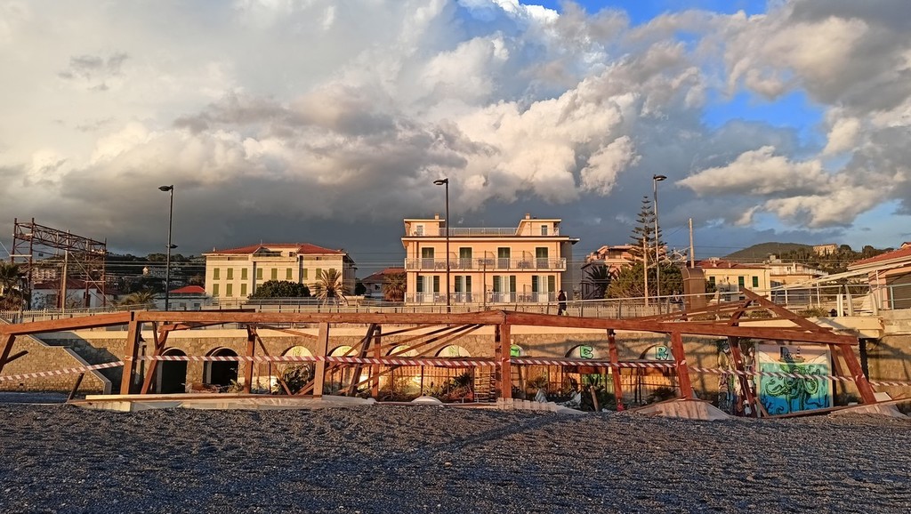“Dal 1952, quando mio nonno rilevò un ex lavatoio dell’800 realizzando lo stabilimento, al 2008, avevamo la nostra struttura originaria con il ristorante e tutto è sempre andato bene. Quando però hanno rilevato l’area per il completamento della passeggiata, fino al confine con Vallecrosia, ci hanno spostato ai Pennoni, a un centinaio di metri da qui. Dovevamo stare nei chioschetti solo per due anni" – racconta Mutascio - "Nel 2010, però, saremmo dovuti tornare dov’eravamo prima. All’interno della nuova passeggiata, infatti, avevano realizzato gli spazi per cinque locali e due concessioni, tra cui la nostra, erano già pronte. Tuttavia abbiamo visto che i locali si allagavano continuamente nell'anno in cui dovevamo entrarci e così, per cercare una quadra, ci hanno prorogato la concessione ai Pennoni, dove abbiamo realizzato la nostra struttura alla base di un molo rialzato. Alla fine siamo rimasti per 15 anni e, tra l'altro, non siamo mai stati colpiti da una mareggiata”.