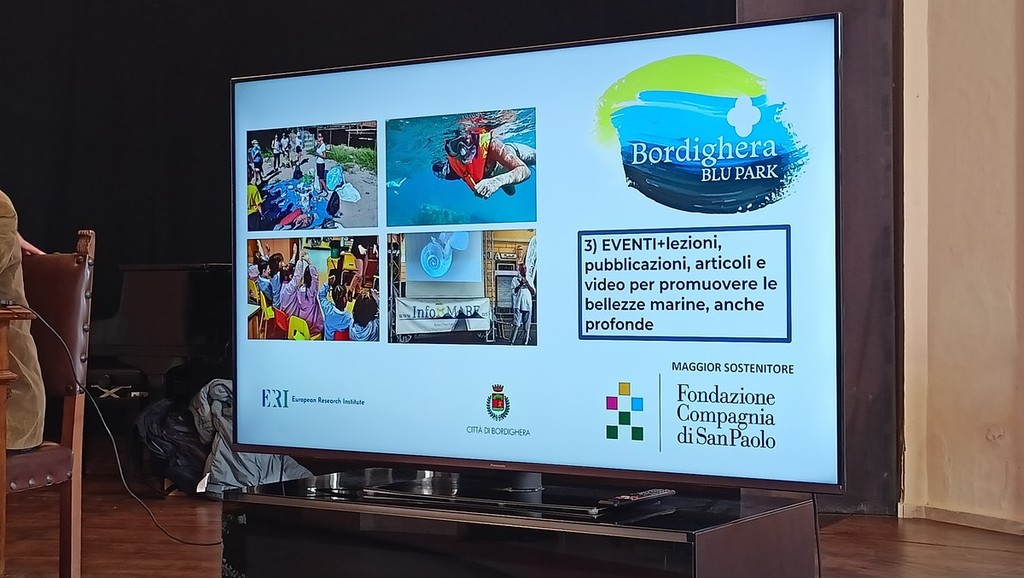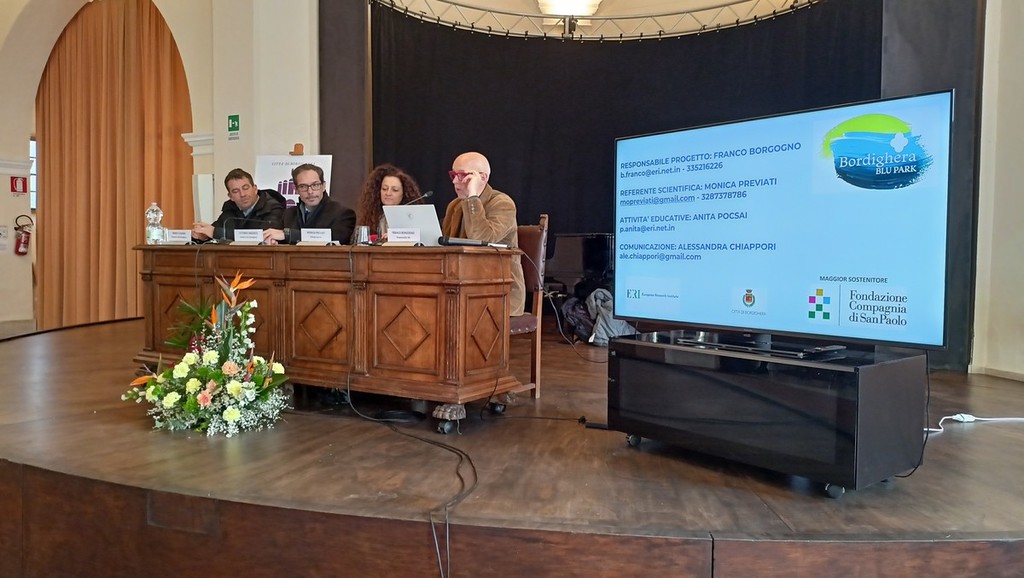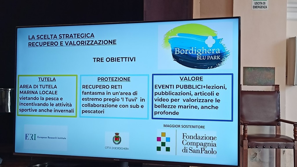 Nasce il progetto Bordighera Blu Park per proteggere e valorizzare l’area marina di Capo Sant’Ampelio, incrementare la conoscenza dell’ambiente marino costiero ligure e implementare nei turisti, ma anche nei cittadini, la consapevolezza della sua importanza per ogni aspetto della vita umana, delineando tre obiettivi specifici: tutelare, proteggere e valorizzare. Il progetto, presentato questa mattina alla presenza di autorità civili e militari presso il centro culturale polivalente dell’ex chiesa Anglicana a Bordighera, è stato ideato dall’European Research Institute e dalla biologa marina Monica Previati e realizzato con il sostegno della Fondazione Compagnia di San Paolo nell’ambito del bando Simbiosi e con la collaborazione del comune di Bordighera.