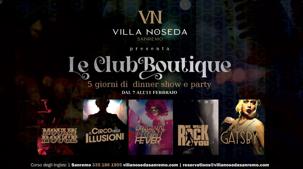 Mercoledì 8 Febbraio sarà “Il Circo delle Illusioni” a prendersi la scena. Sontuoso, spettacolare, splendente di luci e colori con magia, suggestione e coreografie a tema, insieme al “Vip Show Music & Fashion” che durante la cena animerà Villa Noseda in compagnia di tanti artisti e ospiti speciali.