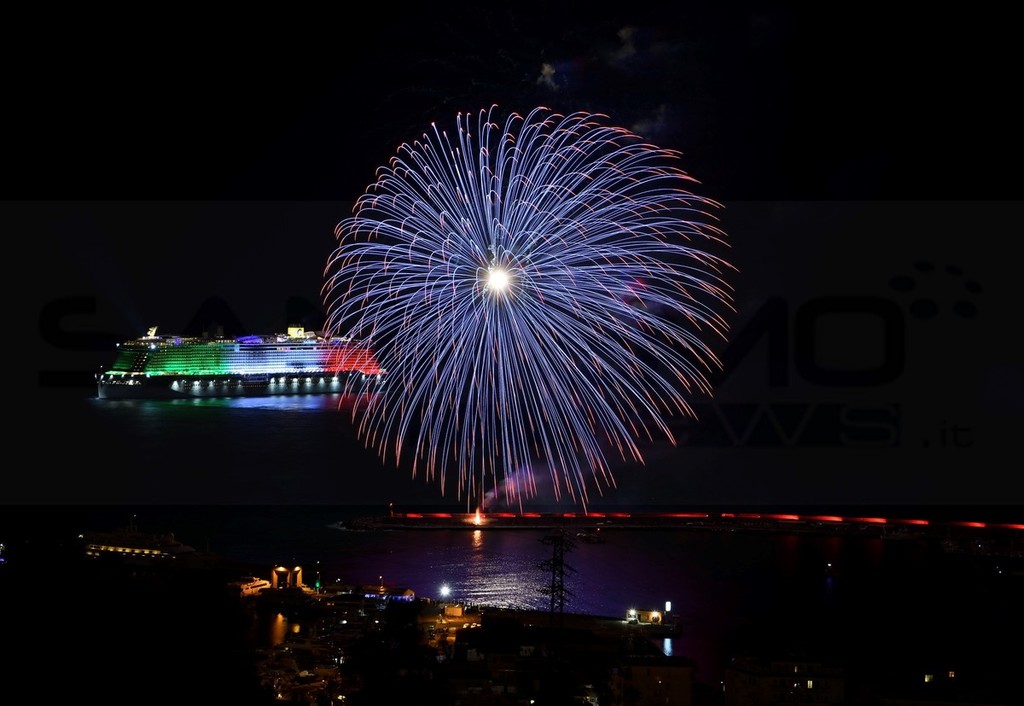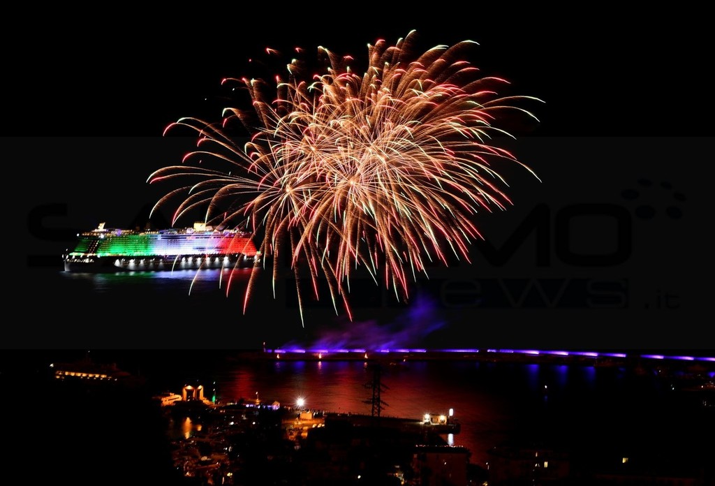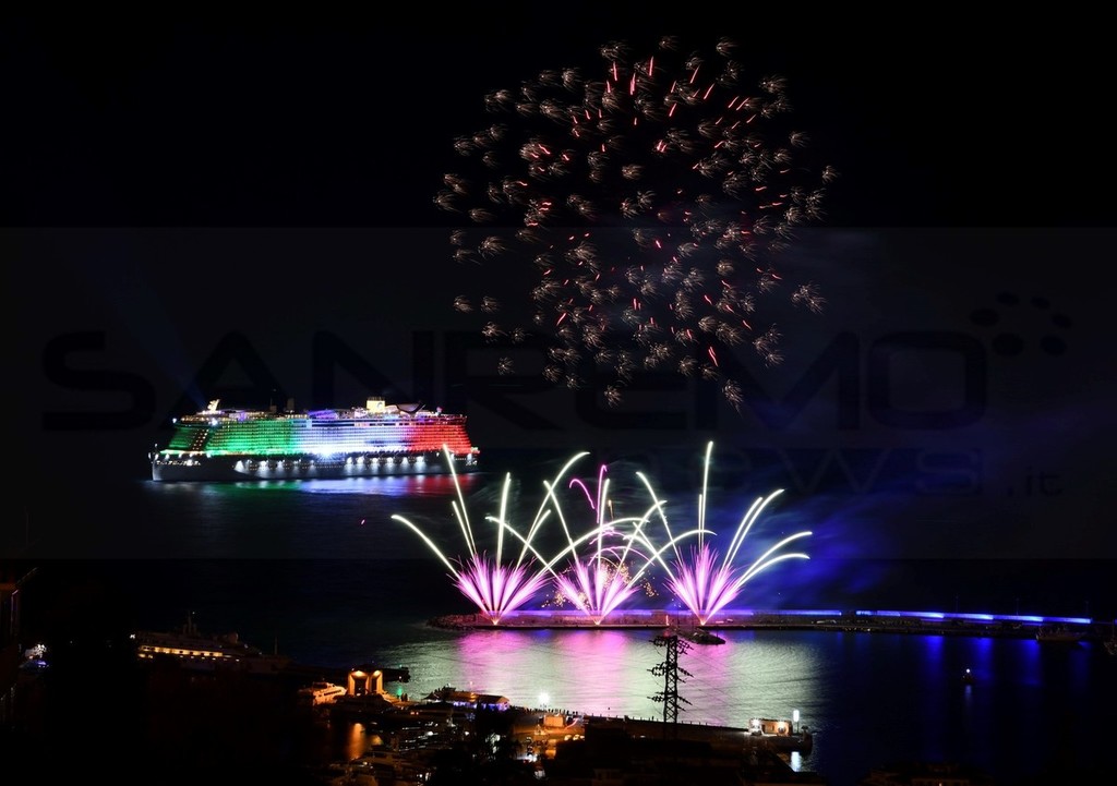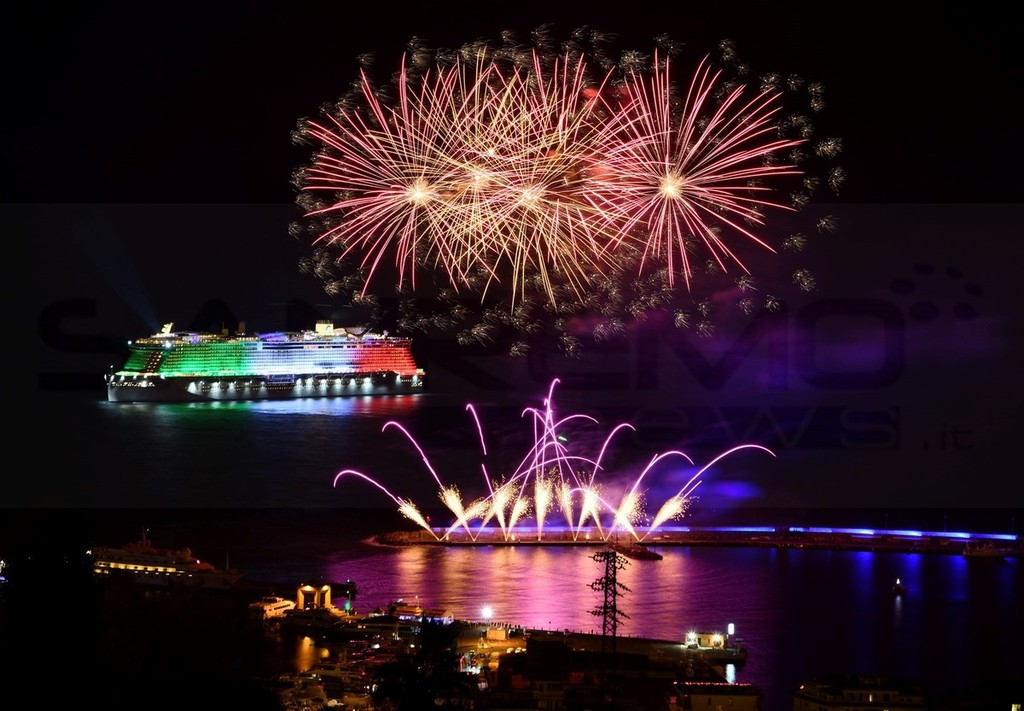 Con le canzoni storiche del Festival di Sanremo, da Modugno ai Maneskin, i fuochi hanno incantato tutti e, poco dopo, due ali di folla hanno accompagnato i protagonisti del Festival.