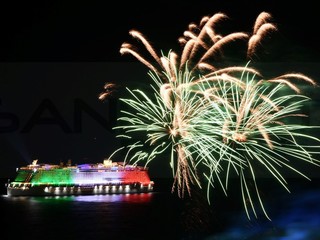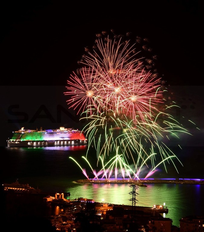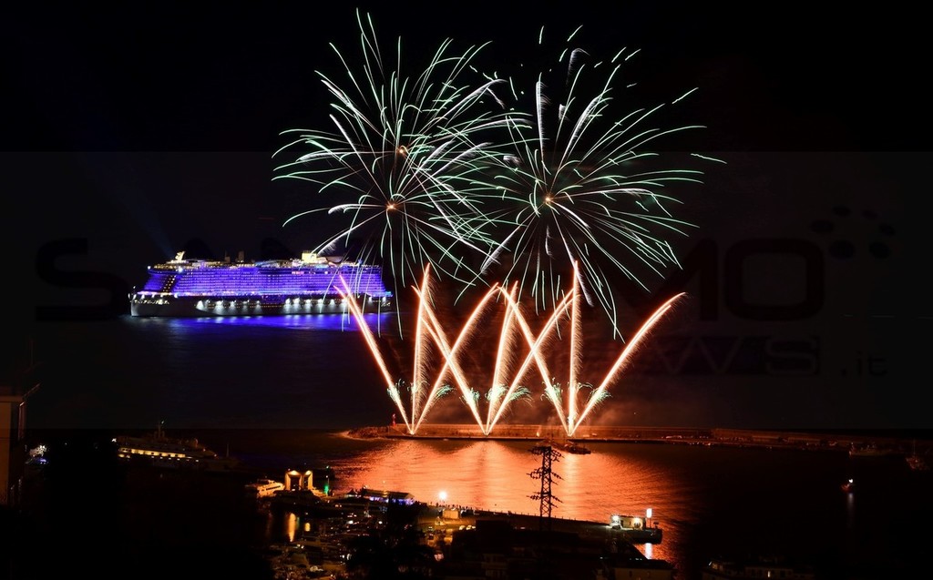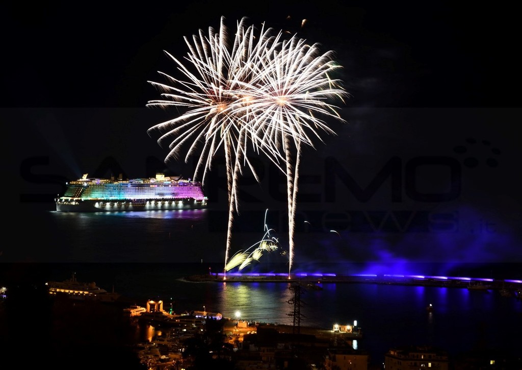 Migliaia di persone con il naso all’insù, prima del ‘Green Carpet’ di questa sera, per godersi lo spettacolo dei fuochi artificiali che hanno di fatto aperto la settimana del Festival di Sanremo.