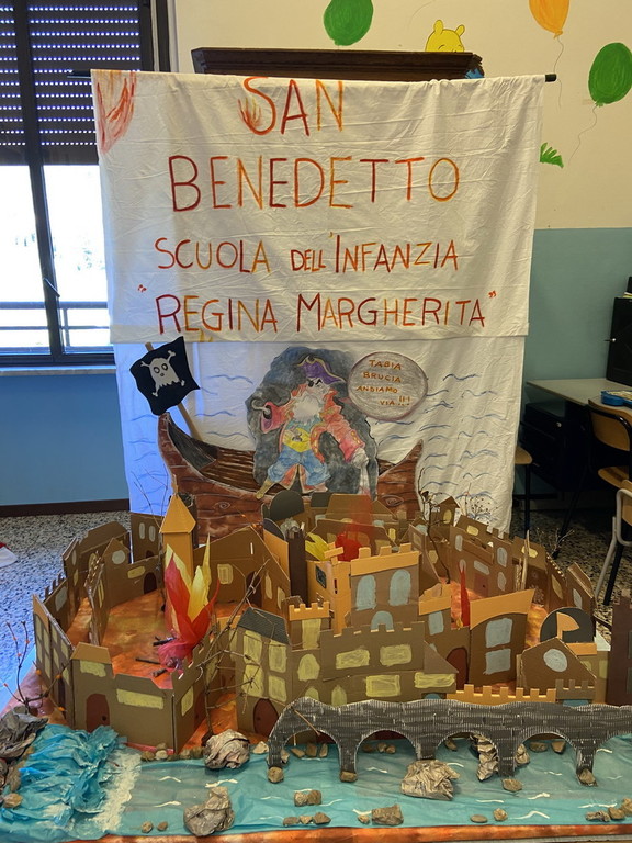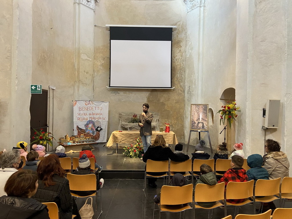 Durante la mostra è avvenuta la presentazione del libro ‘Storia di San Benedetto e della gallinella saggia’ di F. Barlucchi, grazie alla collaborazione con l'associazione ‘Fuochi storici San Benedetto’, il libro è stato donato alle insegnanti che lo condivideranno con i bambini. A seguito del racconto i bambini hanno potuto visitare la mostra relativa alla tradizione di San Benedetto”.