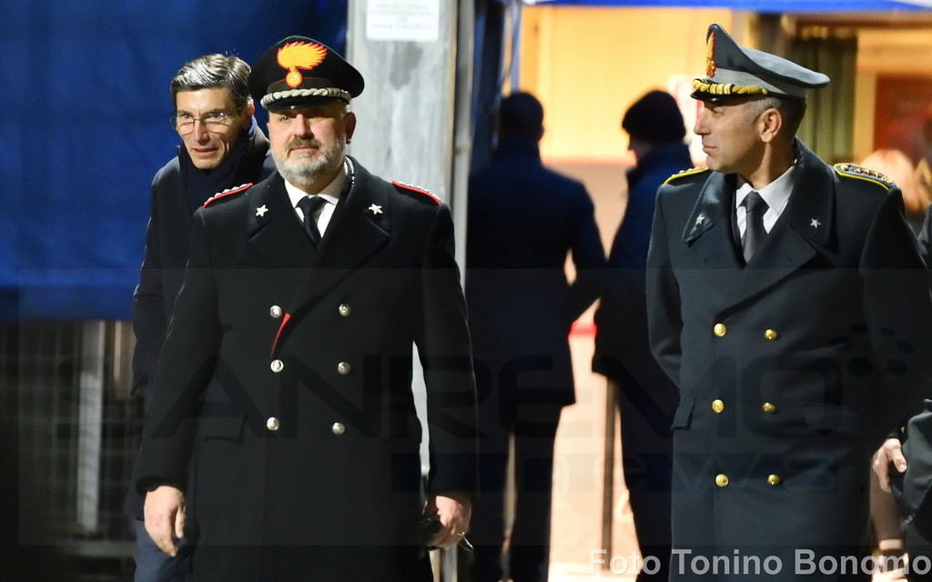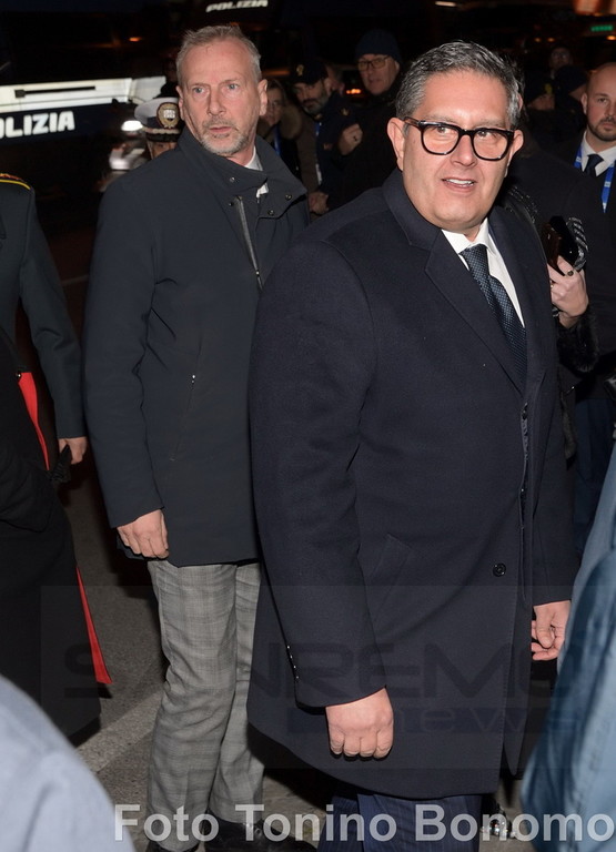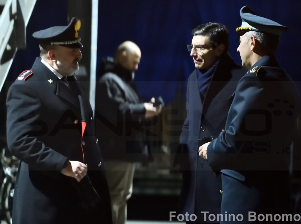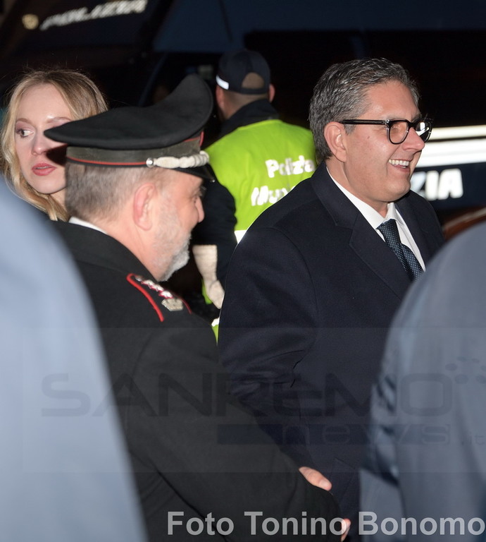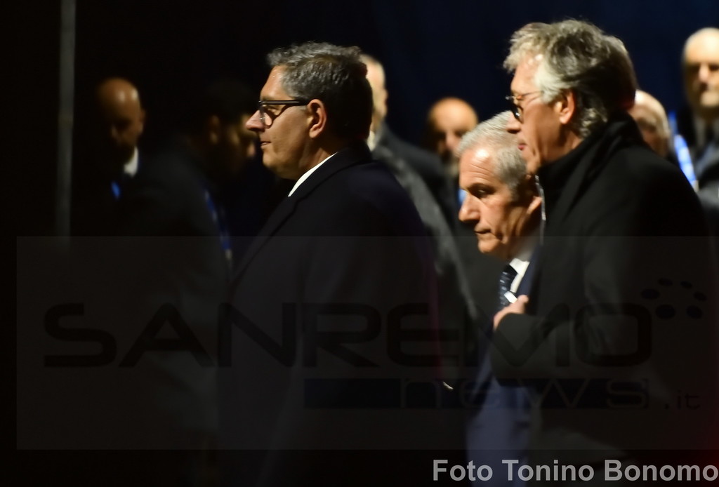 E non è sfuggito, ovviamente, all’obiettivo di Tonino Bonomo che ha fotografato il momento dell’incontro, pochi minuti prima dell’ingresso in teatro, dove sta per iniziare la prima serata del Festival della Canzone.