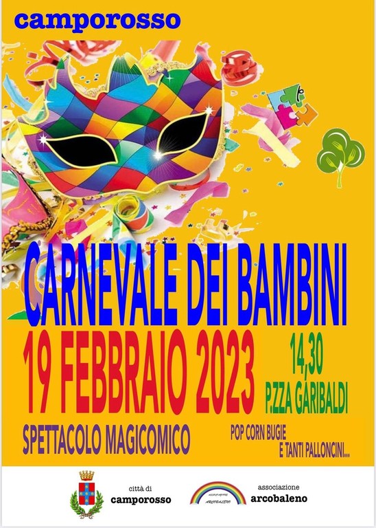 L’evento è organizzato dall’associazione Arcobaleno in collaborazione con il comune di Camporosso. “Vi aspettiamo numerosi domenica 19 febbraio alle 14:30 in piazza Garibaldi a Camporosso" - dicono il sindaco di Camporosso Davide Gibelli e l'intera Amministrazione comunale.