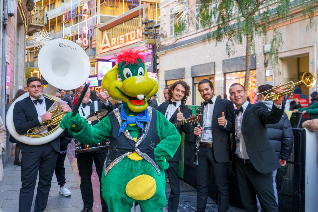 Continua la missione di Prezzemolo – mascotte di Gardaland - a Sanremo: coinvolgere passanti, vip del mondo dello spettacolo e gli Ospiti del Festival di Sanremo in una travolgente sfilata musicale con la Gardaland Orchestral Group, l’orchestra itinerante che da ieri e fino a venerdì 10 febbraio animerà le strade sanremesi.
