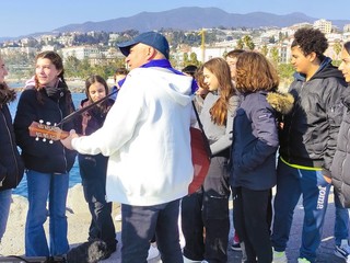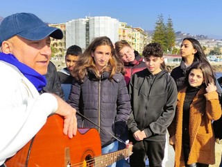 I ragazzi, insieme al dirigente scolastico, al “Psicologo della Strada” ed a tutta la troupe hanno percorso le strade di Sanremo, partendo dall’Ariston, costeggiando il lungomare Sanremese per poi sostare vicino l’edificio storico del Forte Santa Tecla. L’istituto Comprensivo “Sanremo Centro Levante”, che offre un percorso ad indirizzo musicale, crede fortemente che la musica, nel quadro del progetto complessivo di formazione della persona secondo i principi generali della scuola, sia fondamentale perché fornisce all’alunno, destinato a crescere in un mondo fortemente caratterizzato dalla presenza della musica come veicolo di comunicazione, una maggiore capacità di lettura attiva e critica della realtà nonché un’ulteriore opportunità di conoscenza e di espressione e un contributo al senso di appartenenza sociale.