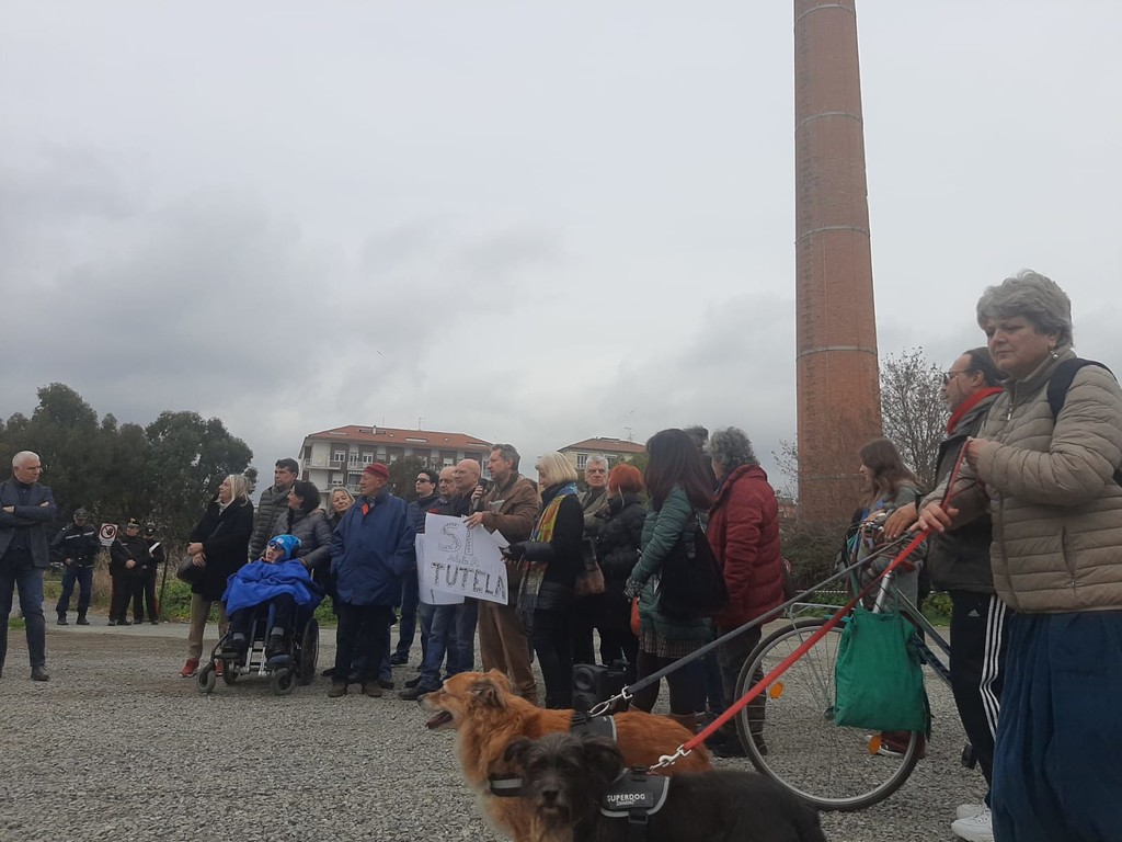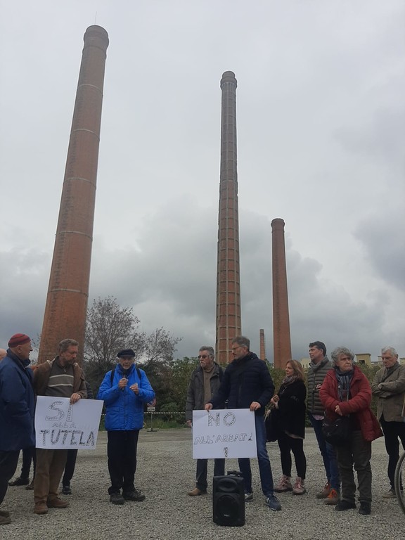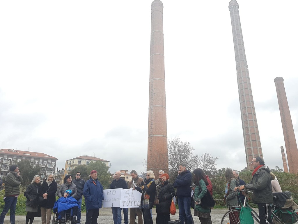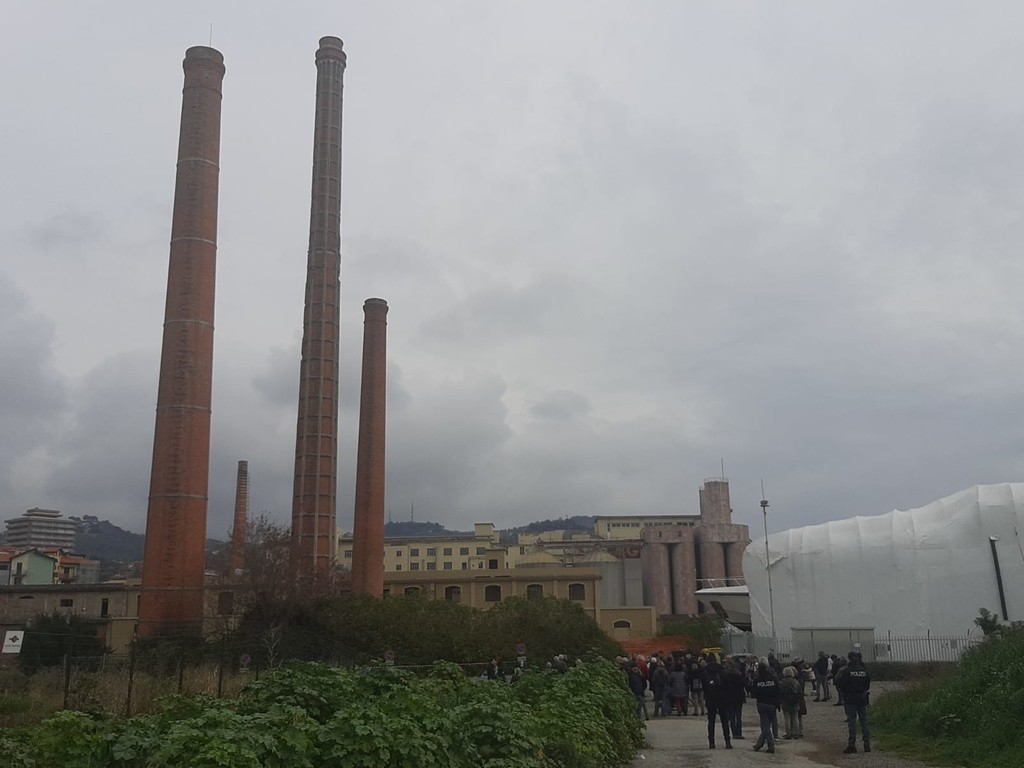 Imperia, contestato l’abbattimento della ciminiera per far posto a un centro commerciale (foto)
