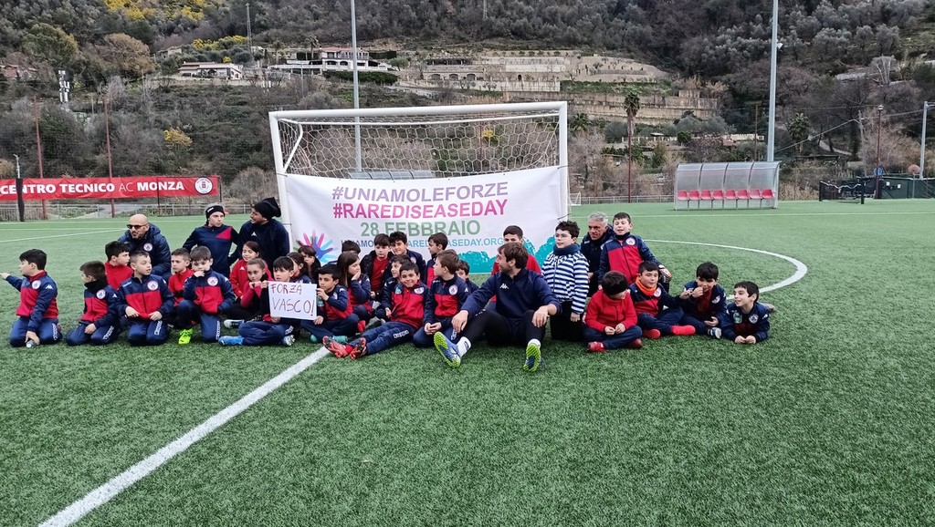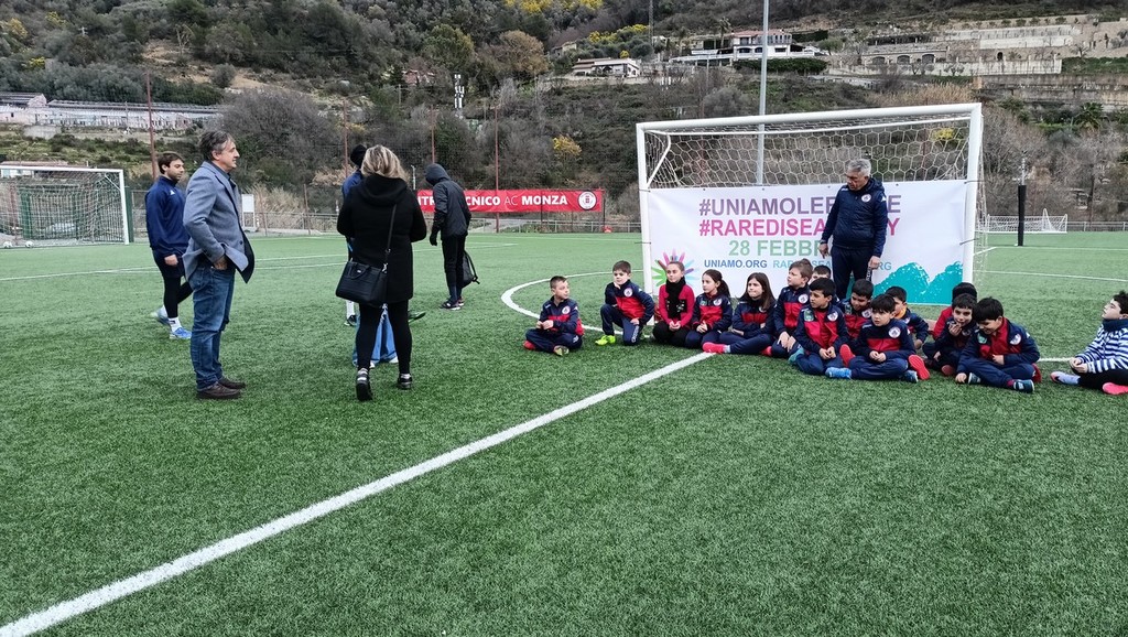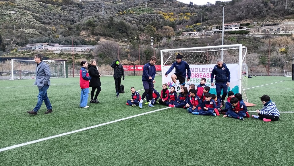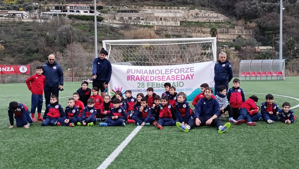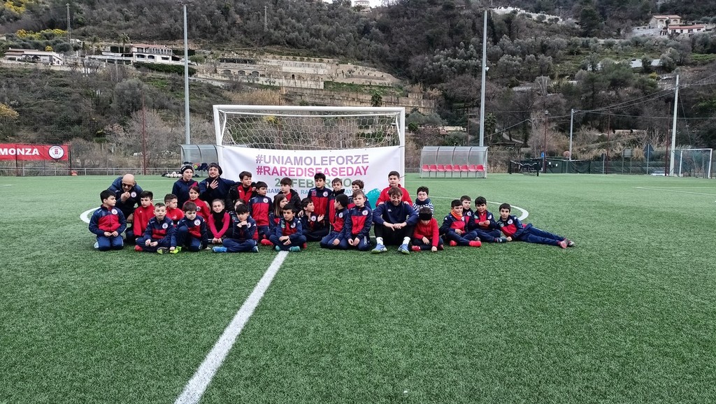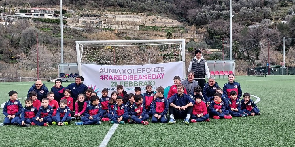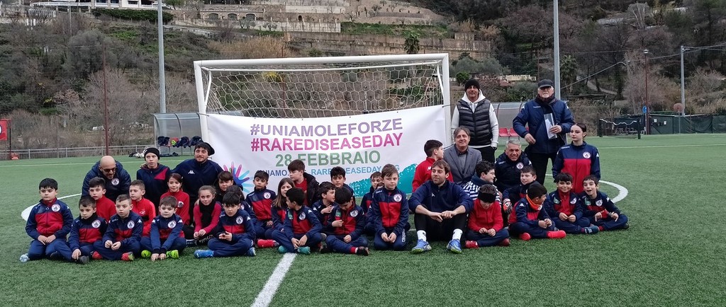 Flash mob dei bambini della scuola calcio dell’Us Camporosso al campo sportivo in via Kennedy Presidente n° 30, nel pomeriggio di oggi, in occasione della Giornata delle malattie rare 2023.